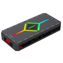 GameMax V4.0 ARGB HUB PWM — bu kompyuter ichidagi RGB/ARGB ventilyatorlar va yoritish tizimlarini boshqarish uchun mo‘ljallangan maxsus RGB ARGB hub (markaziy boshqaruv bloki). U ventilatorlar, LED chiziqlar va boshqa RGB yoritgichlarni bir markazdan boshqarishga yordam beradi va ularni anakart bilan sinxronlashtirish imkonini beradi.