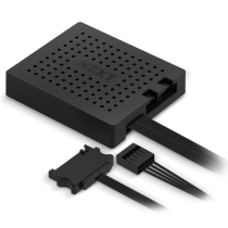 Контроллер подсветки вентиляторов NZXT RGB & Fan Controller [AC-2RGBC-B1] станет отличным выбором для пользователей, которые предпочитают эксплуатировать не только эффективное, но и эффектно выглядящее компьютерное оборудование. Устройство универсально: допускается коммутация как с вентиляторами, так и с лентами светодиодной подсветки. Общее количество разъемов – 5. Два разъема используются для подсветки, а три – для вентиляторов. Контроллер собран в корпусе, при производстве которого была задействована комбинация из пластика и металла.
