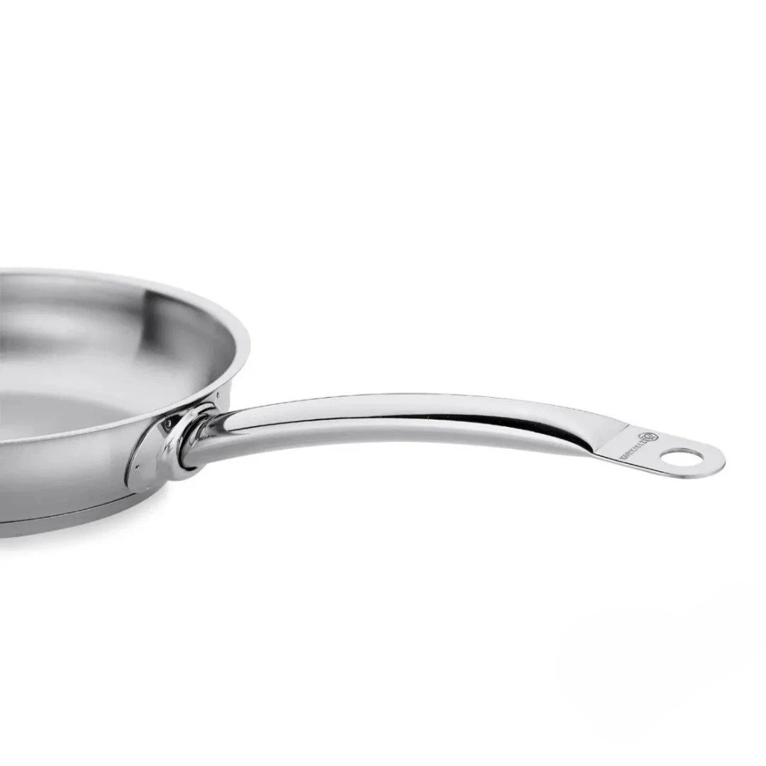 Ручка выполнена из нержавеющей стали, надёжно закреплена и остаётся прохладной при обычной температуре готовки. Эргономичная форма ручки обеспечивает удобный захват и безопасность во время использования.