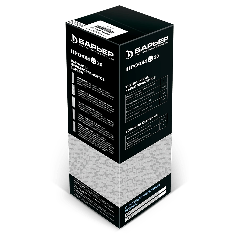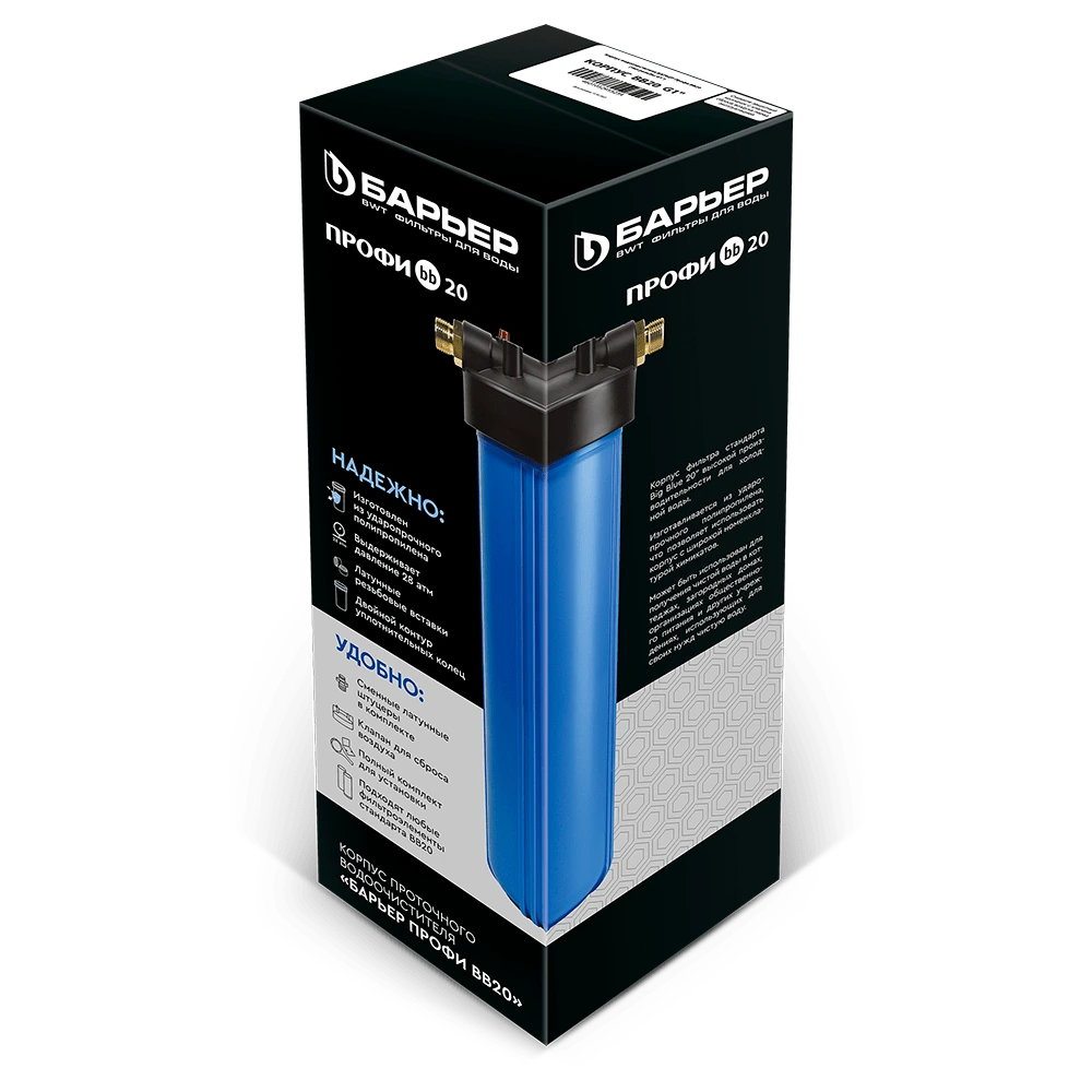 К данному корпусу водоочистителя подходят любые сменные картриджи БАРЬЕР стандарта ВВ 20: