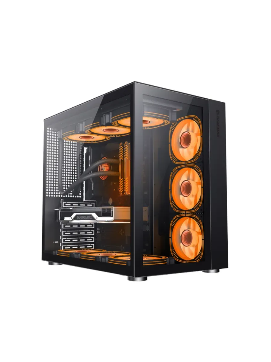 Эффективный обдув: Несмотря на «стеклянный» дизайн, корпус спроектирован для мощного воздушного потока. Поддержка до 9 вентиляторов позволит охладить даже самые горячие системы.
