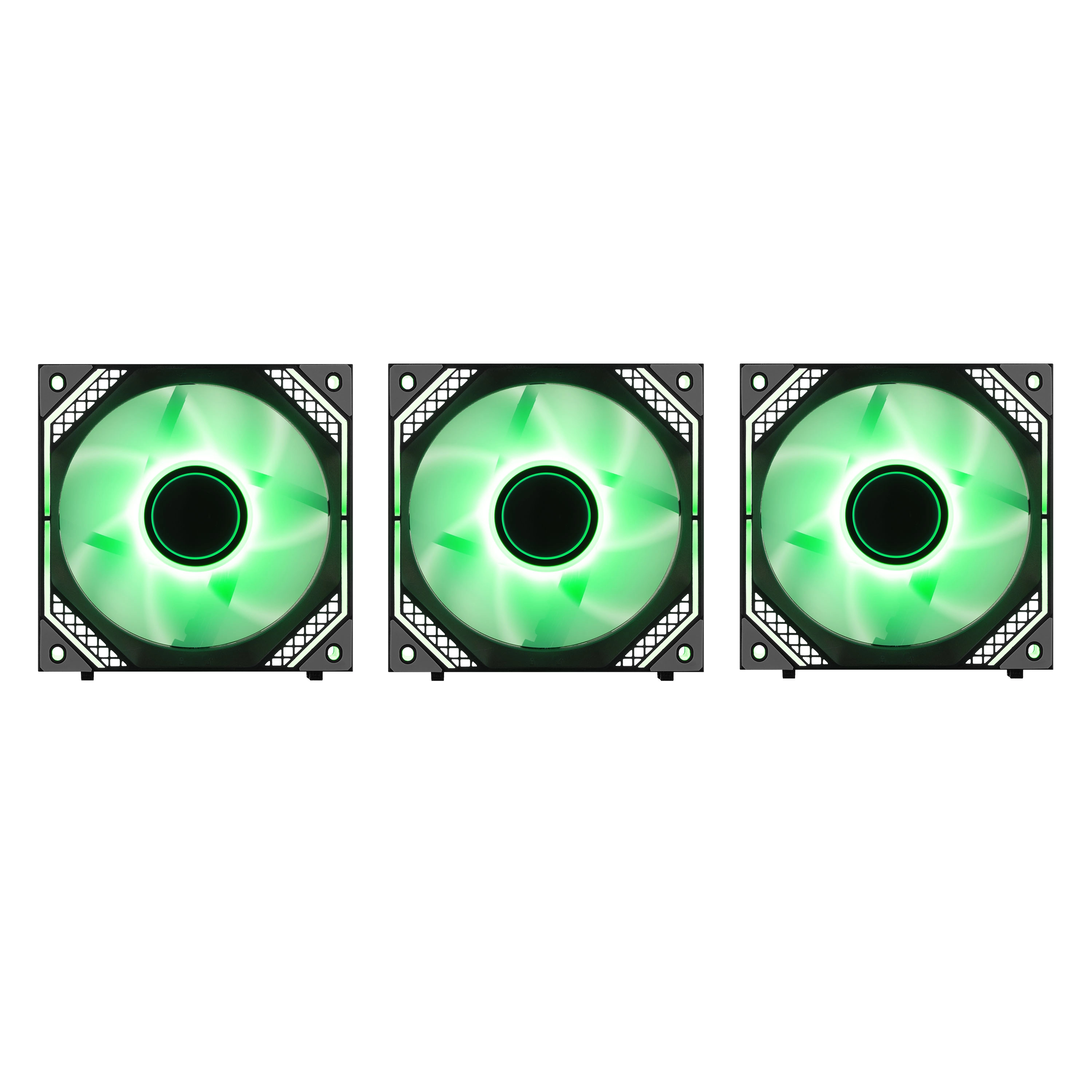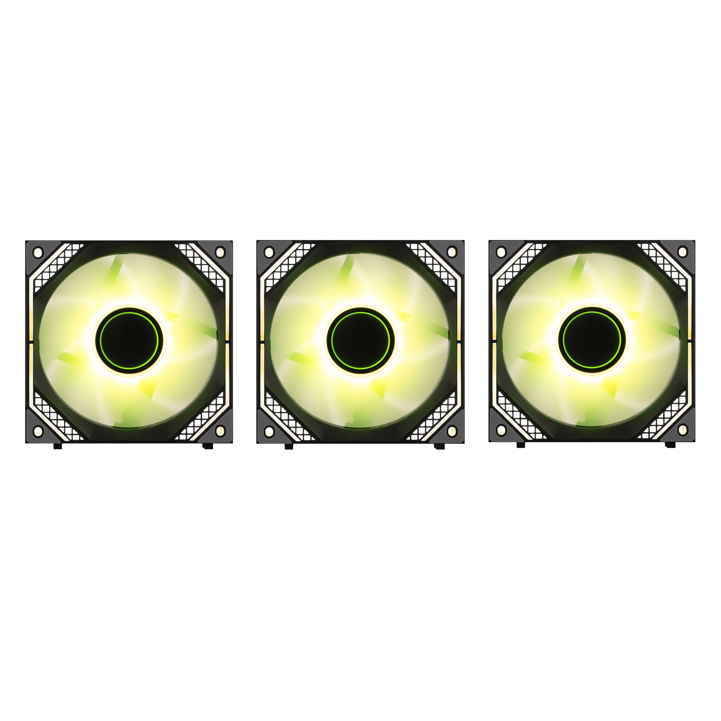 Har bir ventilyator ARGB yoritish bilan jihozlangan bo‘lib, uni anakart bilan sinxronlashtirish yoki mustaqil boshqarish mumkin. Har birida yetti pichoq bor, ular havoni teng taqsimlab, statik bosim 1.03 dan 2.05 mm/H2O gacha bo‘lib, kuchli va barqaror havo oqimini ta’minlaydi.