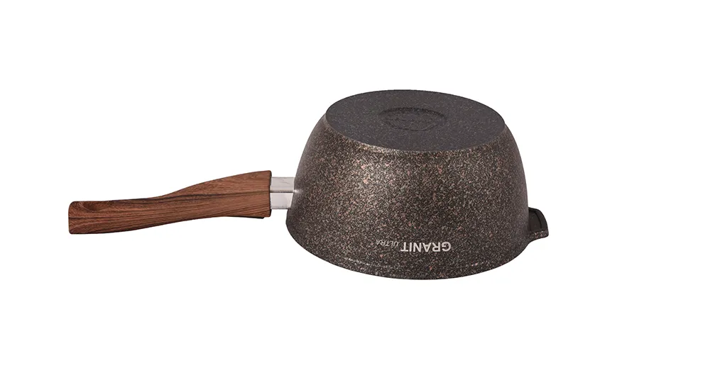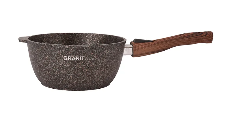 Ковш покрыт инновационным антипригарным покрытием Ultra Granit, усиленным сверхтвердыми минералами нового поколения, близкими по твердости алмазу. Такое покрытие гарантирует долгий срок службы посуды — более чем в 7 раз дольше стандартных решений, а также позволяет использовать металлические кухонные принадлежности без риска повреждения поверхности. Даже мелкие царапины или потертости не влияют на свойства покрытия. Пища не прилипает, а для приготовления достаточно минимального количества масла.