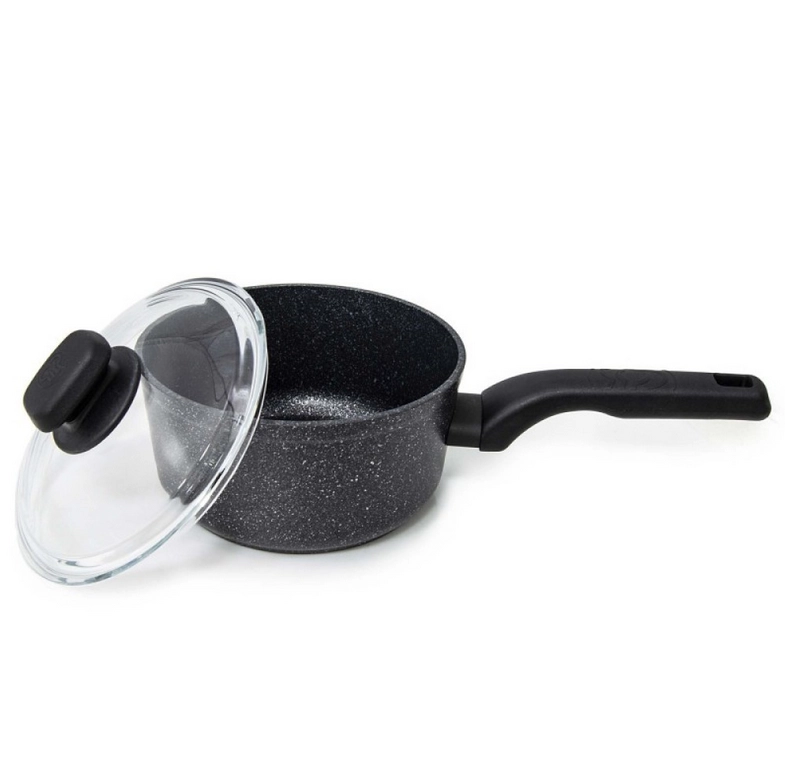 Kukmara 3 l qozon-jarovnya, antiprigar qoplamali (qora mramor), shisha qopqoqli (жмт32а)