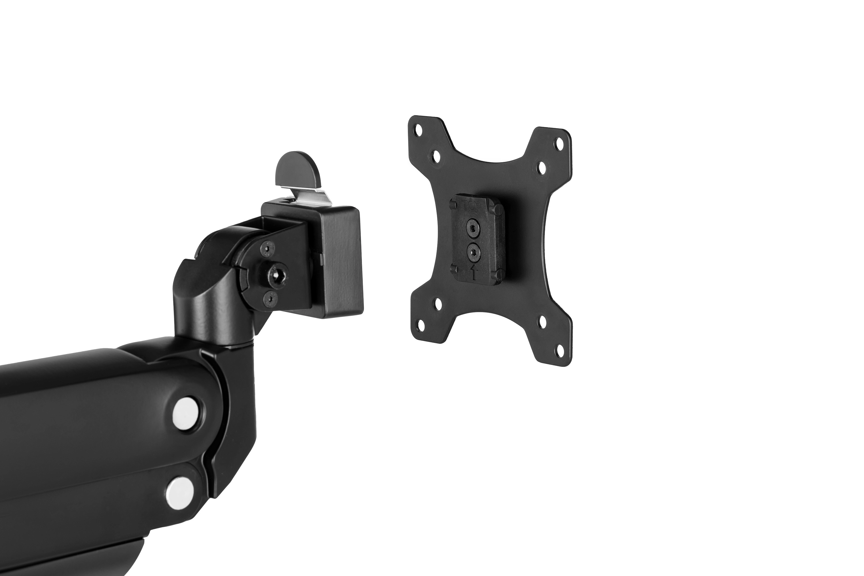 Taglik 17″ dan 43″ gacha bo‘lgan monitorlar bilan mos keladi va 18 kg gacha bo‘lgan yuklamani ko‘tara oladi, bu uni ko‘plab monitor modellariga universal qiladi. O‘rnatilgan pnevmatik prujinali mexanizm nozik sozlash imkonini berib, monitor pozitsiyasini mustaqil ravishda eng qulay holatga — 40° yuqoriga, 40° pastga qiya qilish, shuningdek ±90° burish va to‘liq aylantirish orqali moslashtirish imkonini yaratadi. 90° burilish funksiyasi ish joyini yanada moslashuvchan qiladi.