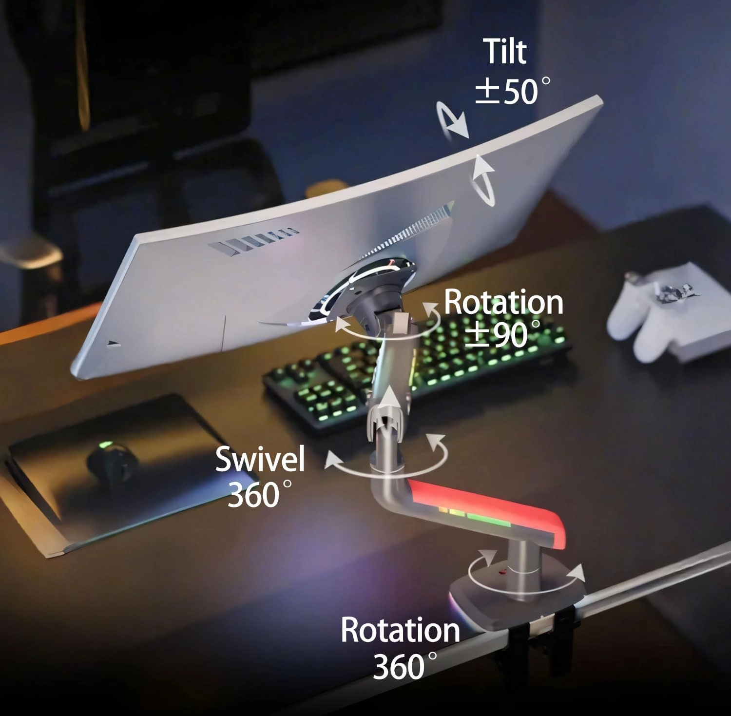 Ish joyingizni zamonaviy ko‘rinishga keltirib, monitoringizdan foydalanishni yanada qulay qilishni xohlaysizmi? NB L50 — bu gazlift mexanizmi va yorqin RGB yoritgichga ega ergonomik kronshteyn bo‘lib, katta ekranlar uchun mos keladi va monitorni har qanday holatda sozlash imkonini beradi.
