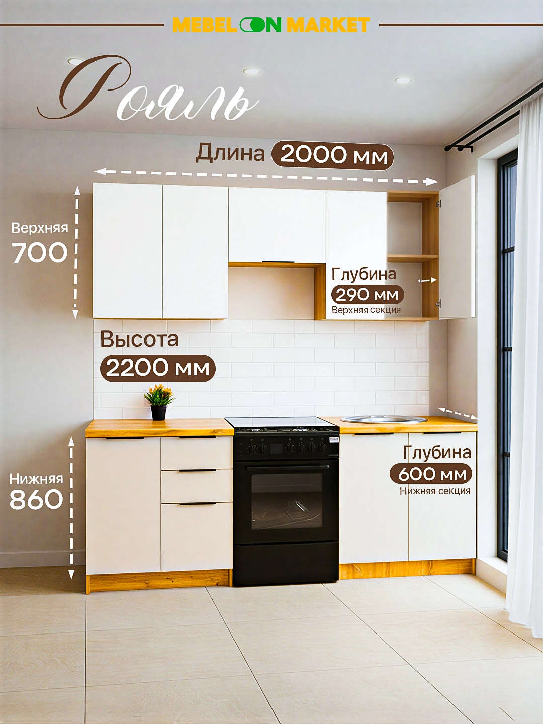“Oshxona garnituri ‘Royal’” — Grand Miks (Qozog‘iston) fabrikasida ishlab chiqarilgan zamonaviy va funksional mebel to‘plamidir. Ushbu garnitur oshxonani qulay va chiroyli tarzda jihozlash uchun ideal tanlovdir. U oshxona buyumlari va mahsulotlarini tartibli saqlashga imkon beradi.