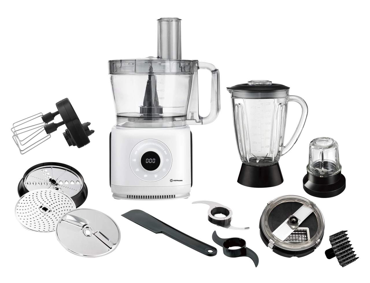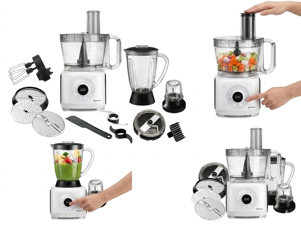 Hofmann SFP01PC/HF oshxona kombayni — bu zamonaviy oshxona uchun mo‘ljallangan universal yechim bo‘lib, maydalash, to‘g‘rash, kesish va ichimliklar tayyorlash funksiyalarini birlashtiradi. 1000 Vt quvvat tufayli qurilma turli xil vazifalarni samarali bajaradi — qattiq mahsulotlarni qayta ishlashdan tortib souslar va smuzilar tayyorlashgacha, bu esa vaqt va kuchni sezilarli darajada tejaydi.
