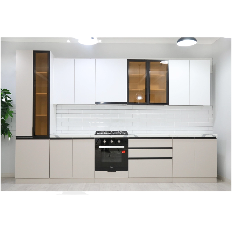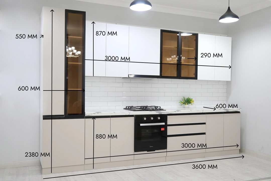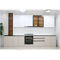 Toza chiziqlar, yorqin dizayn oshxonani vizual ravishda kengaytiradi, unga yorug‘lik va sokinlik bag‘ishlaydi. Kichik oshxonalar uchun ham, katta maydonlar uchun ham mos.
