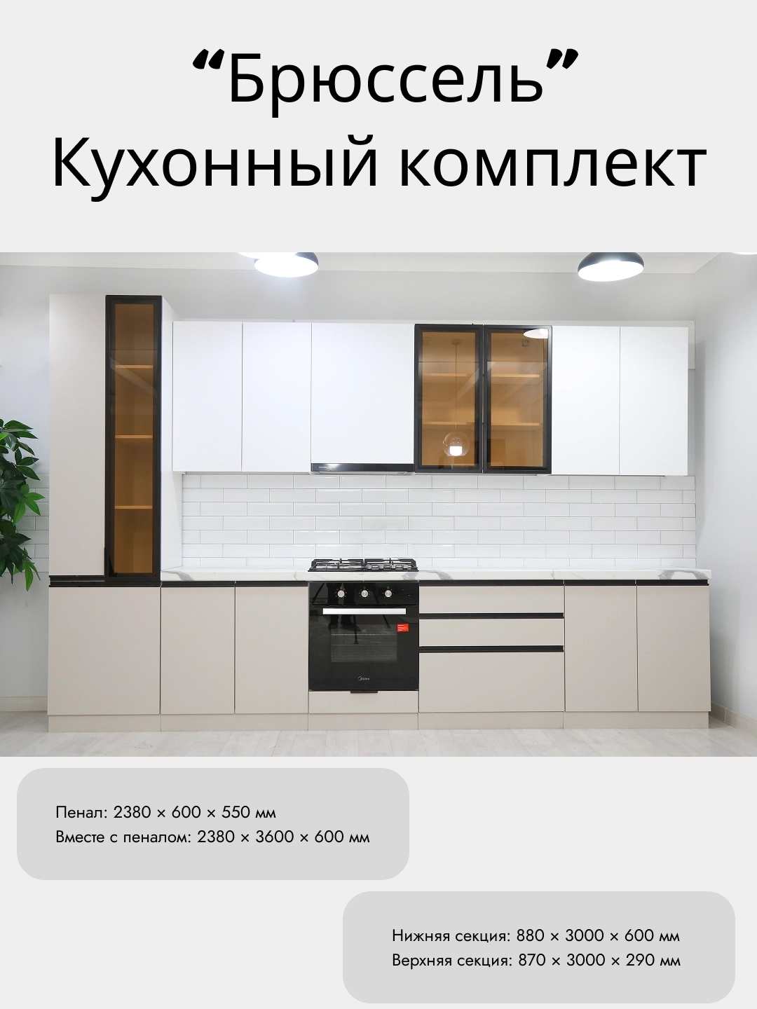 “Bryussel” oshxona komplekti — bu chiroy, qulaylik va ishonchlilik uyg‘unligi. Oshxonangizni zamonaviy va shinam maskanga aylantiring!