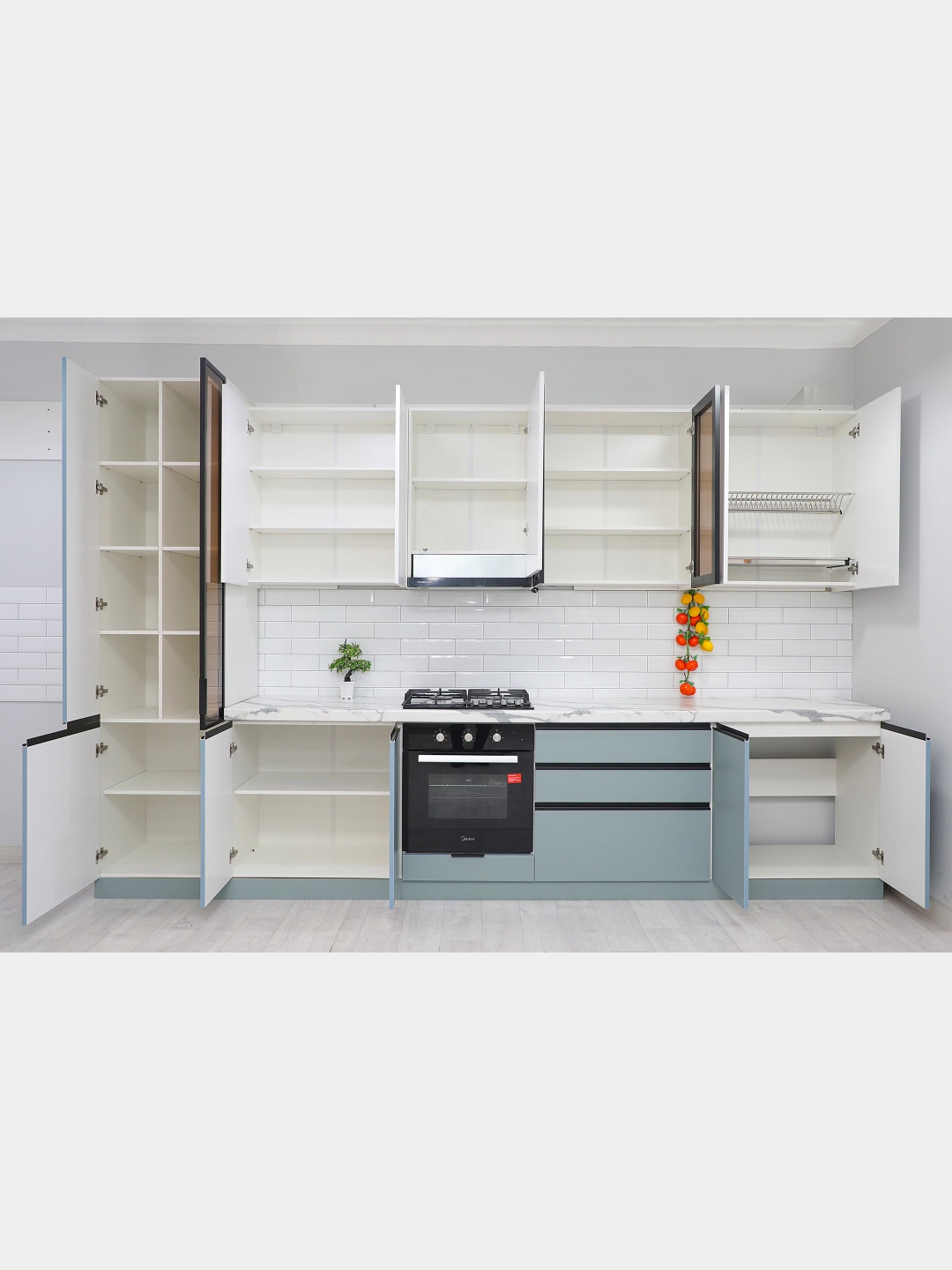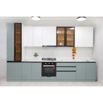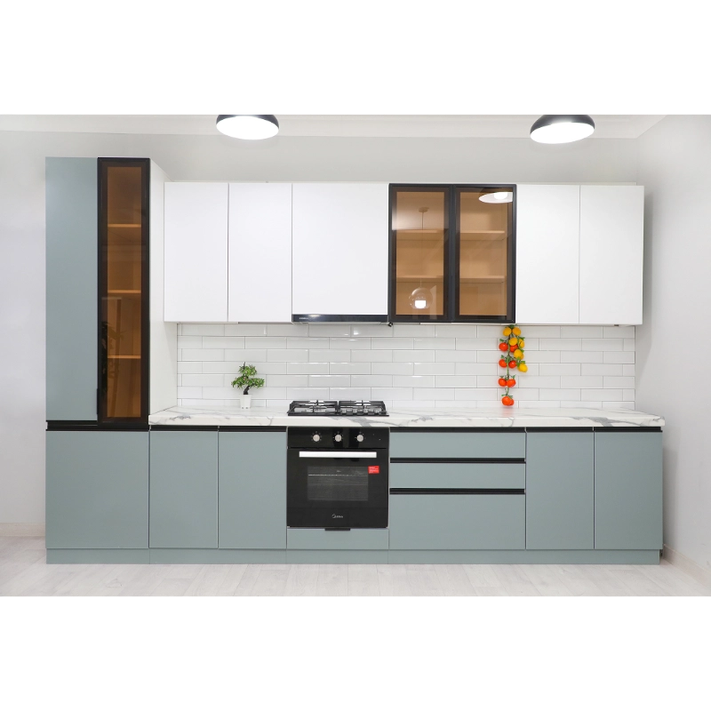 Toza chiziqlar, yorqin dizayn oshxonani vizual ravishda kengaytiradi, unga yorug‘lik va sokinlik bag‘ishlaydi. Kichik oshxonalar uchun ham, katta maydonlar uchun ham mos.