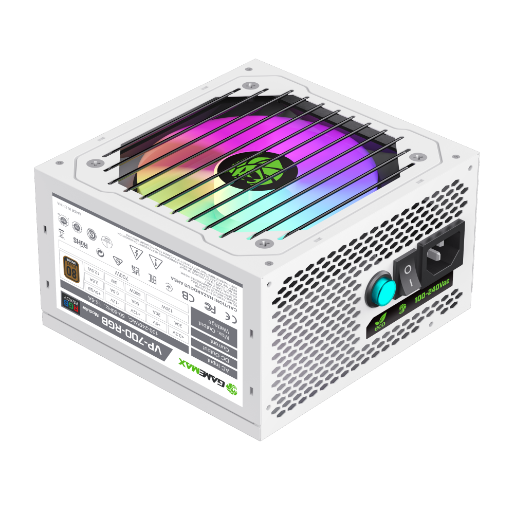GameMax VP‑700 RGB — это ATX блок питания с RGB‑подсветкой и сертификацией 80 Plus Bronze, разработанный для сборки стационарных компьютеров с достойным энергопотреблением и стильной визуальной составляющей.
