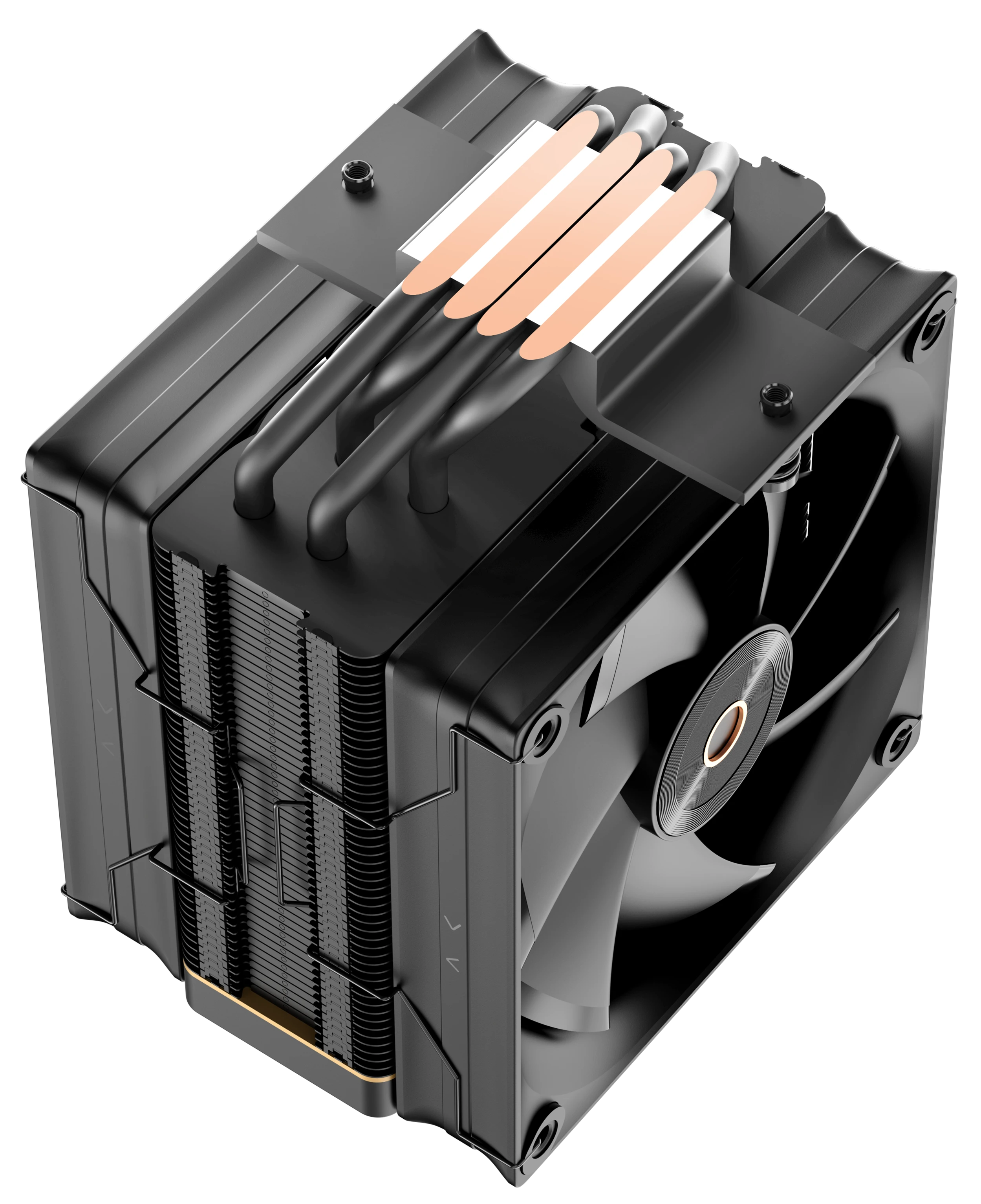 Медное основание и четыре тепловые трубки: Прямой контакт четырех медных трубок диаметром 6 мм с крышкой процессора гарантирует мгновенную передачу тепловой энергии на алюминиевый радиатор.