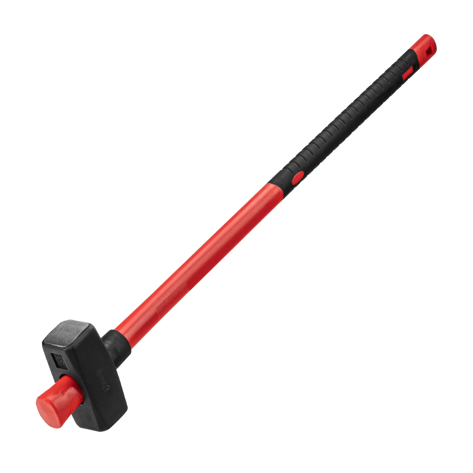 Рукоятка выполнена из плотного пластика с толстым фибергласовым стержнем, который эффективно гасит вибрации и снижает отдачу при ударах. Дополнительная страховочная резинка и фиксация на протяг гарантируют надёжность конструкции, исключая соскакивание бойка. С рабочих граней бойка сняты фаски, что делает использование безопасным — во время работы не откалываются мелкие частицы металла.