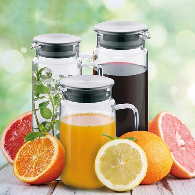 Корпус кувшина выполнен из прочного, прозрачного стекла, которое не только позволяет видеть содержимое, но и придаёт изделию изысканный внешний вид. Благодаря объёму 1 литр, кувшин идеально подходит для подачи воды, сока, морса, компота или лимонада на 2–4 персоны. Его можно использовать как для холодных, так и для слегка тёплых напитков.