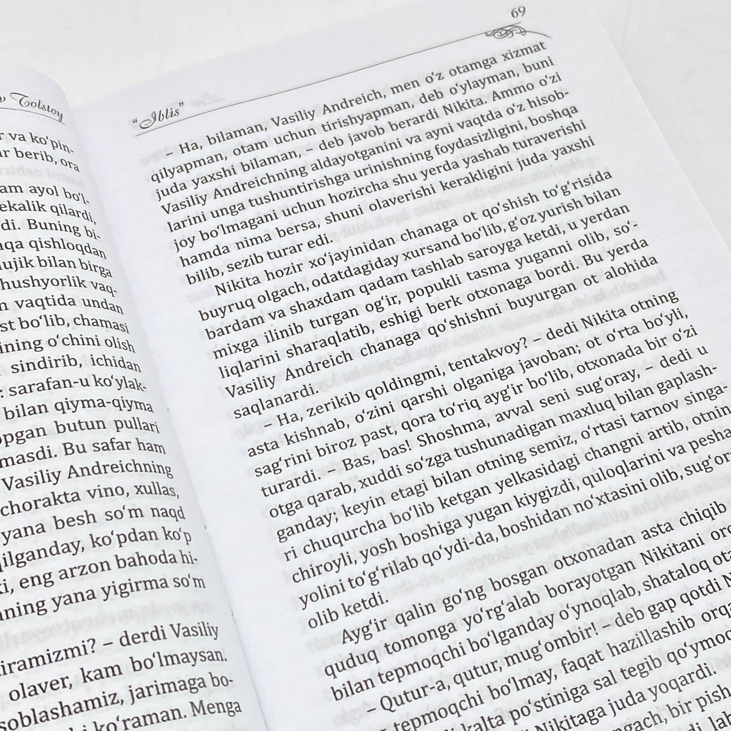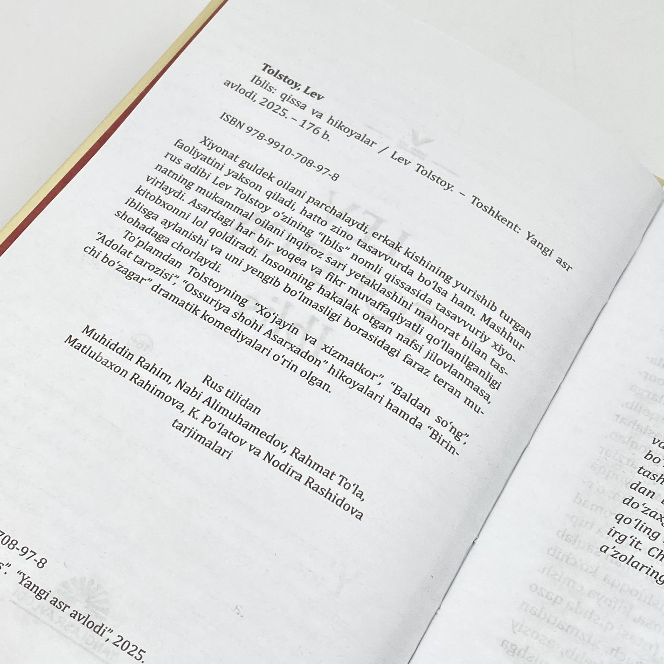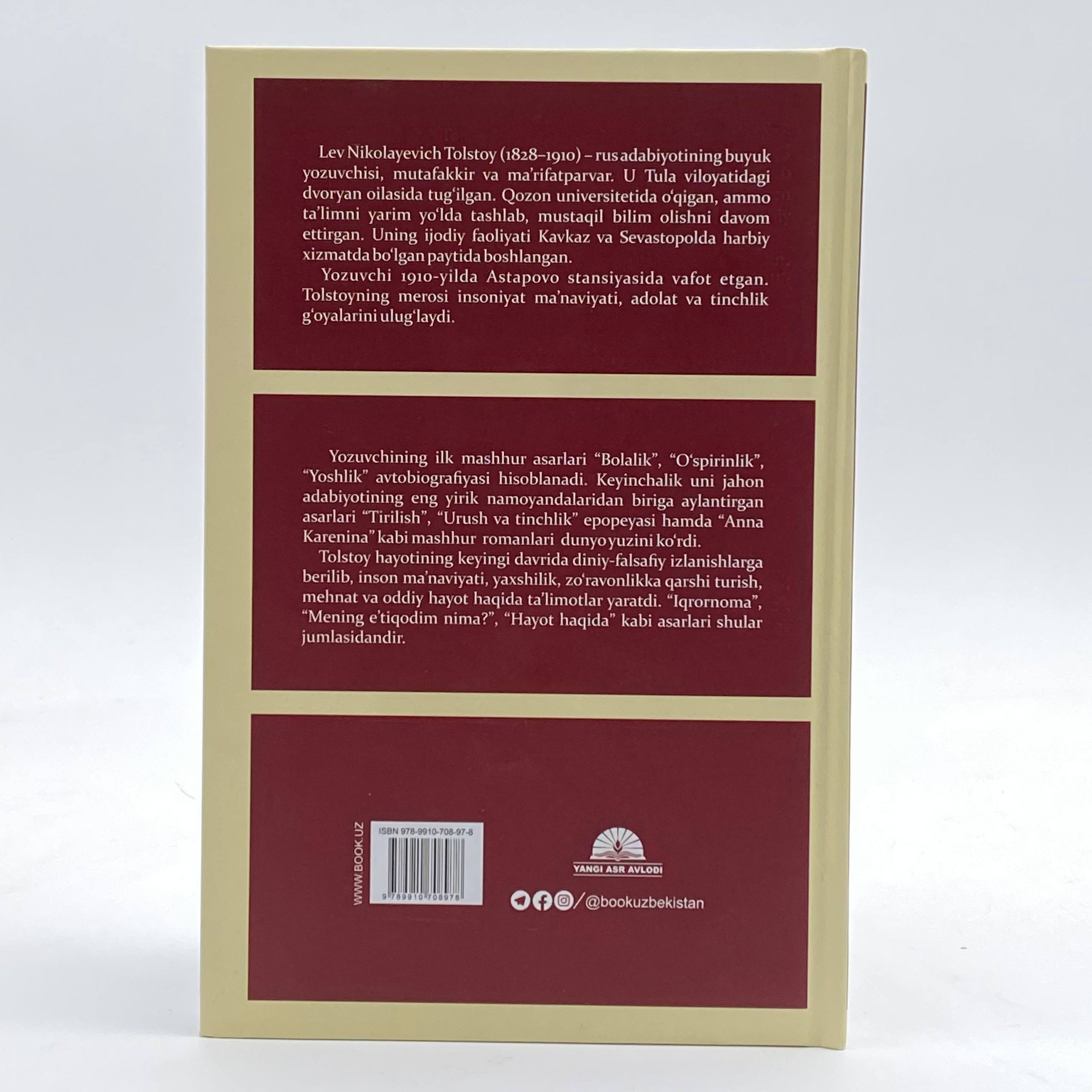 Тўпламдан Толстойнинг "Хўжайин ва хизматкор", "Балдан сўнг", "Адолат тарозиси", "Оссурия шоҳи Асархадон" ҳикоялари ҳамда "Биринчи бўзағар" драматик комедиялари ўрин олган.