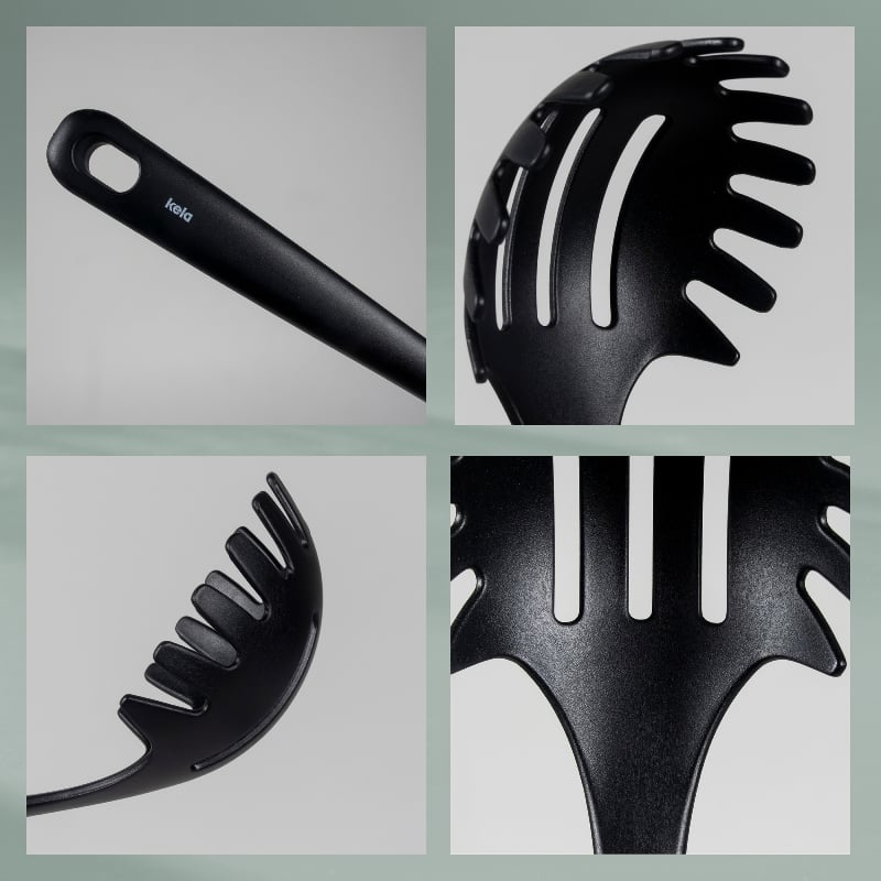 • Эргономичная форма с зубцами — позволяет легко захватывать спагетти и подавать их порционно без скольжения.