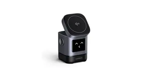 Беспроводное зарядное устройство UGREEN W709 (45775) UNO 2-in-1 Robot Magnetic Wireless Charger 20W для iPhone &AirPods с кабелем USB-C-USB-C 1м. Цвет: серый.