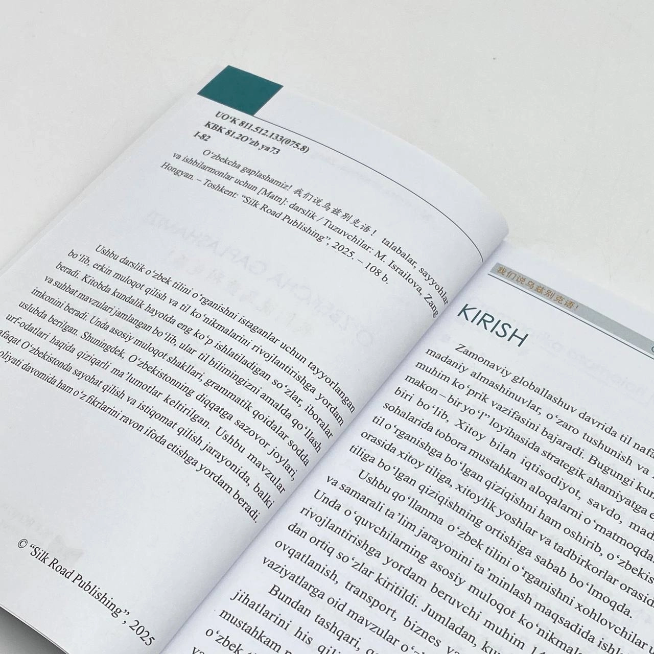 Ushbu darslik o'zbek tilini o'rganishni istaganlar uchun tayyorlangan bo'lib, erkin muloqot qilish va til ko'nikmalarini rivojlantirishga yordam beradi. Kitobda kundalik hayotda eng ko'p ishlatiladigan so'zlar, iboralar va suhbat mavzulari jamlangan bo'lib, ular til bilimingizni amalda qo'llash imkonini beradi. Unda asosiy muloqot shakllari, grammatik qoidalar sodda uslubda berilgan. Shuningdek, O'zbekistonning diqqatga sazovor joylari, urf-odatlari haqida qiziqarli ma'lumotlar keltirilgan. Ushbu mavzular nafaqat O'zbekistonda sayohat qilish va istiqomat qilish jarayonida, balki ish faoliyati davomida ham o'z fikrlarini ravon ifoda etishga yordam beradi.