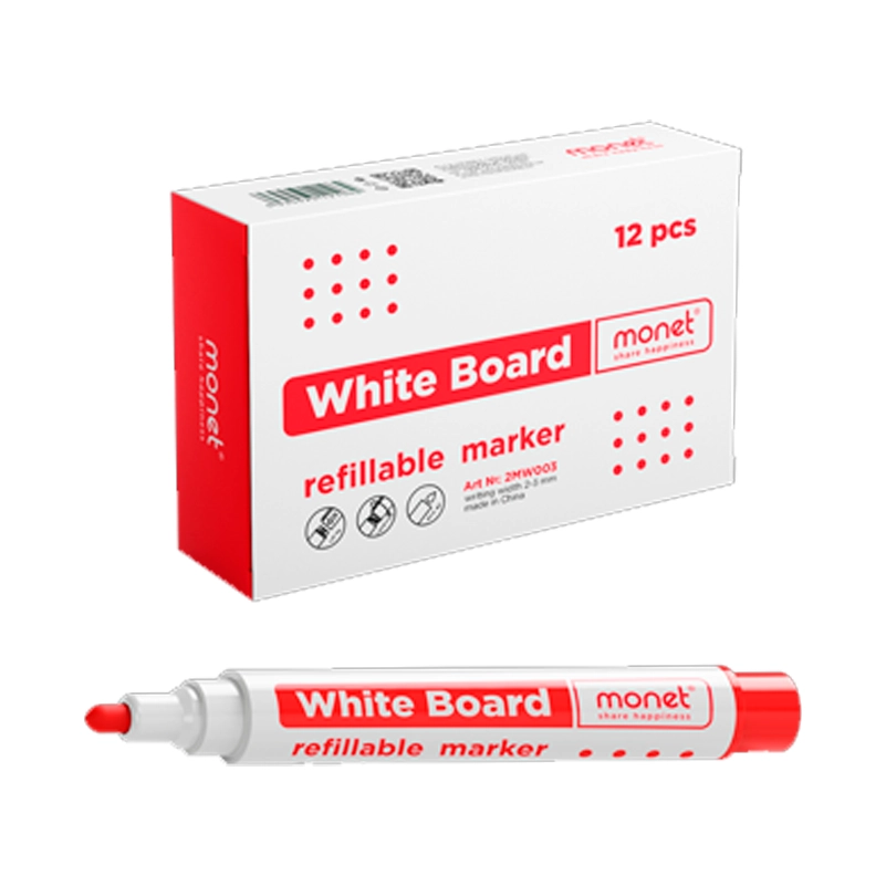 MONET 2MW003 oq doska markeri yorqin qizil siyohlar tufayli aniq va ravshan chiziqlar hosil qiladi. Tez quriydigan maxsus siyohlar osongina yuvilib, dog‘ qoldirmaydi. Ergonomik korpus qulay qamrashni ta’minlaydi.