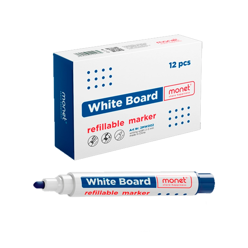 Ko‘k siyohli MONET 2MW002 markeri foydalanish qulayligi va uzoq muddat xizmat qilishi uchun mo‘ljallangan. Yuqori sifatli uchlik ingichka va qalin chiziqlar chizish imkonini beradi, tez quriydigan siyoh esa oson o‘chiriladi.