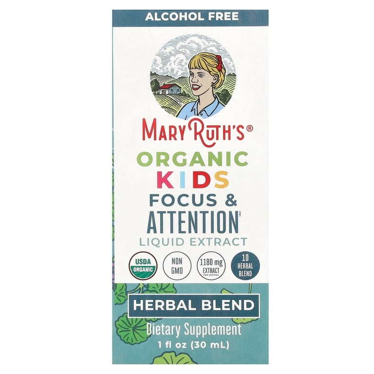 Органический жидкий экстракт MaryRuth’s Organic Kids создан специально для детей, чтобы помогать сосредоточиться и улучшать внимание. Каждая порция (30 капель, 1 мл) содержит 1180 мг запатентованной смеси из 10 органических трав: корень астрагала, надземные части буквицы древесной, листья гинкго, корень элеутерококка, надземные части готу колы, корень родиолы, корень солодки, цветки английской лаванды, листья мяты колосистой и надземные части пассифлоры. Эта смесь мягко успокаивает разум и тело ребёнка, способствует поддержке нервной системы и когнитивных функций, помогая сосредоточиться и сохранять спокойствие.