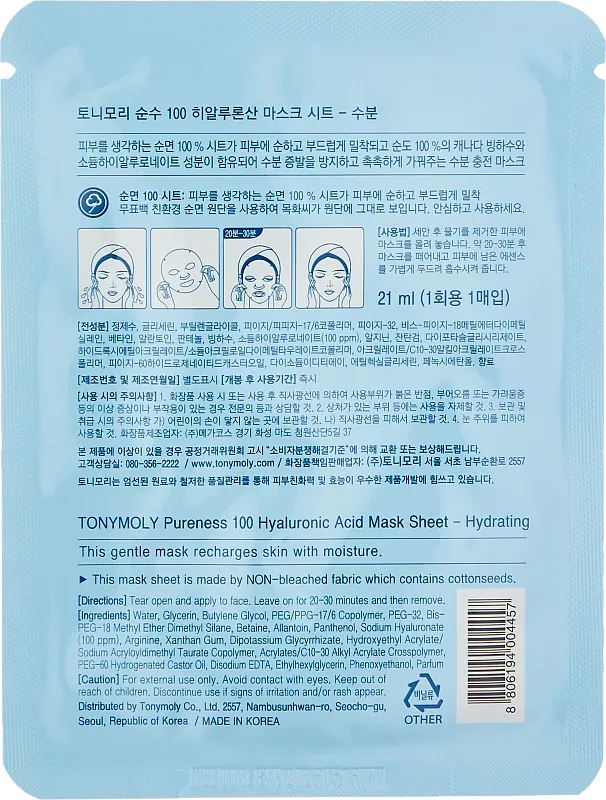 Pureness 100 Hyaluronic Acid Mask — yuz uchun intensiv namlovchi matoli niqob