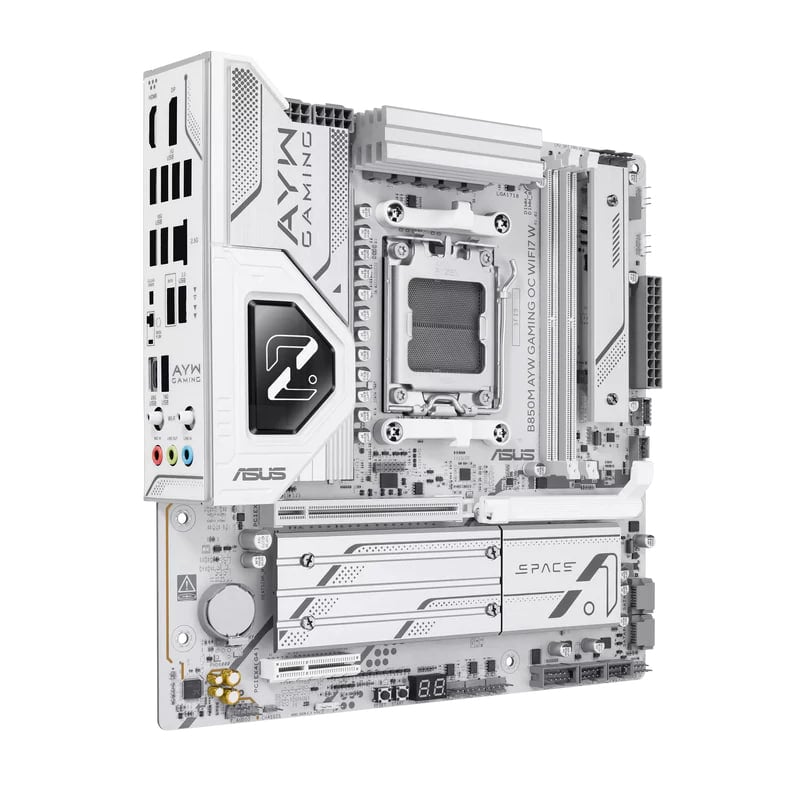 ASUS B850M AYW GAMING WIFI — это современная материнская плата формата Micro‑ATX, разработанная для настольных ПК на базе процессоров AMD Ryzen серий 7000, 8000 и 9000 с сокетом AM5. Она построена на чипсете AMD B850 и сочетает в себе надежное питание, расширенные возможности памяти, высокую скорость хранения данных и удобные сетевые интерфейсы для стабильной работы и игр.