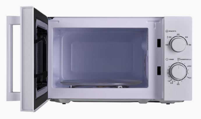 Диапазон мощности — от 100 до 700 Вт, что позволяет бережно нагревать самые разные продукты. Рабочая частота микроволн — 2450 МГц, обеспечивающая равномерный и стабильный нагрев.
