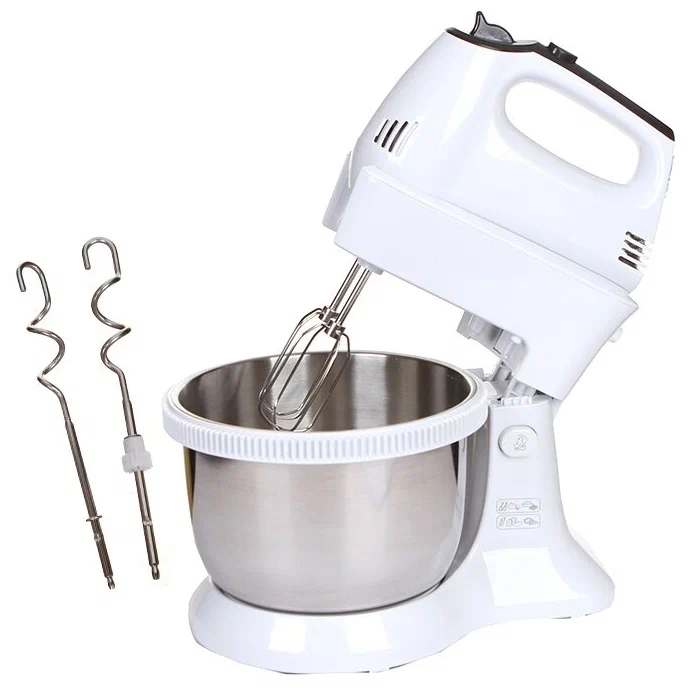 Quickmix – универсальный, мощный электрический ручной миксер с чашей на подставке. Готовьте кексы быстро и легко! Мотор мощностью 300 Вт, 5 скоростей и турбо-режим помогут приготовить блюдо по любому рецепту. Благодаря автоматически вращающейся чаше на подставке вы сможете замесить тесто без лишних усилий, освободив ваши руки. Миксер можно использовать отдельно от чаши и держателя. В набор входят два комплекта насадок, выполненных из нержавеющей стали - венчики для теста, смесей для приготовления кексов, яиц и кремов и крюки для замешивания теста при приготовлении теста для пиццы или хлеба. Ручной миксер Quickmix c чашей на подставке – незаменимый помощник в приготовлении теста. Наслаждайтесь отличными результатами!