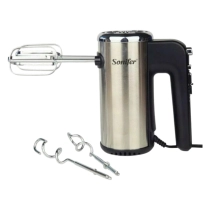 Ручной миксер Компактен, очень удобен в эксплуатации, великолепный кухонный помощник. Оснащен насадками для взбивания и перемешивания, и отлично справится с приготовлением теста, кремов и коктейлей, соусов и многого другого. Корпус миксера изготовлен из пластика, а насадки из нержавеющей стали.5 скоростей. Имеет кнопку отсоединения насадок, хромированные венчики для взбивания и замешивания теста ( два венчика из нержавеющей стали, два крюка для теста из нержавеющей стали). Питание: 240ВТ Материал: пластик Мощность: 300ВТ