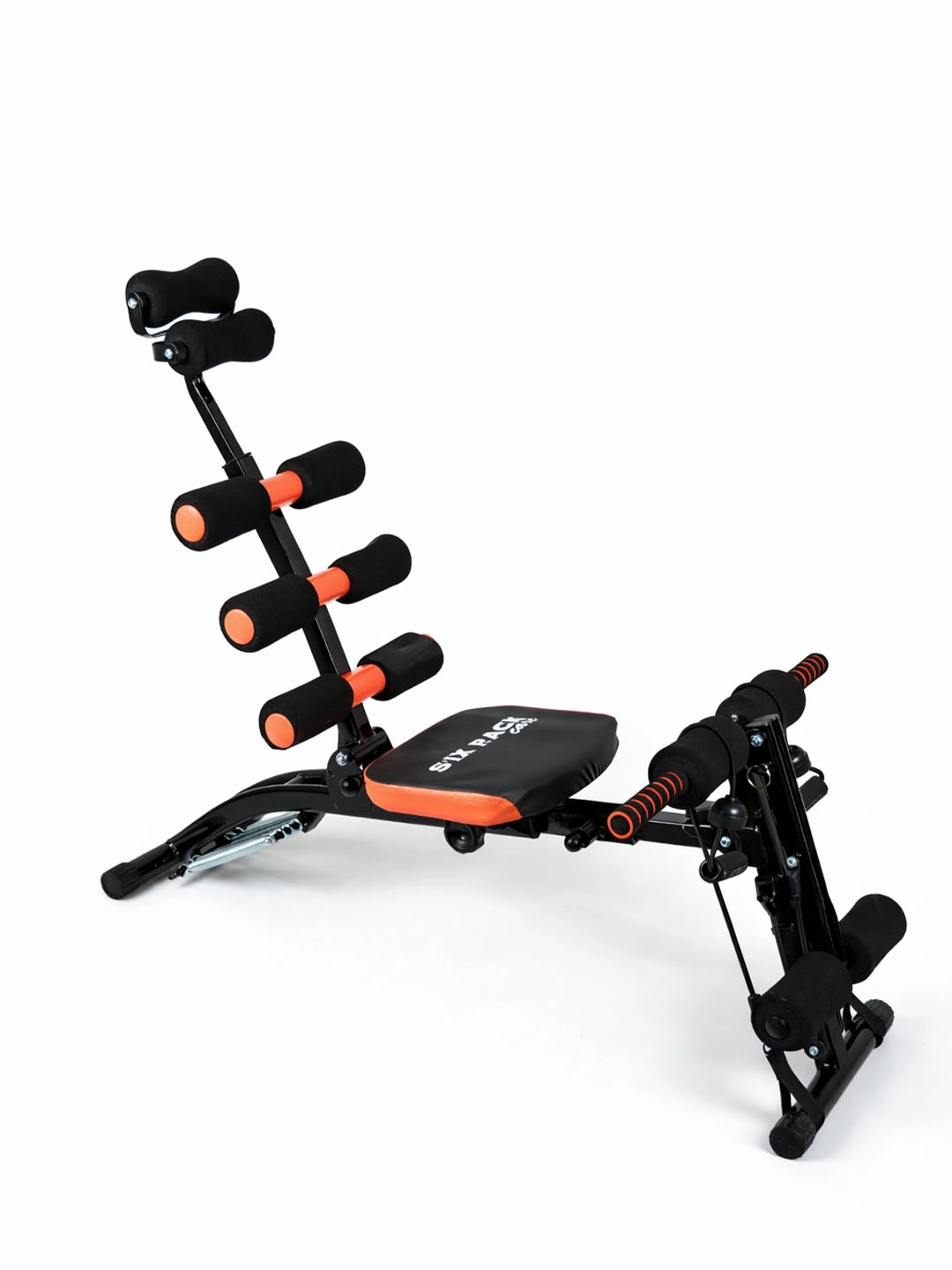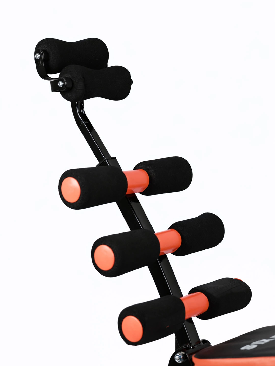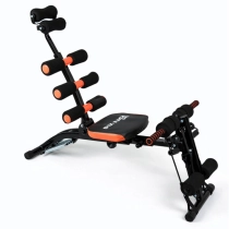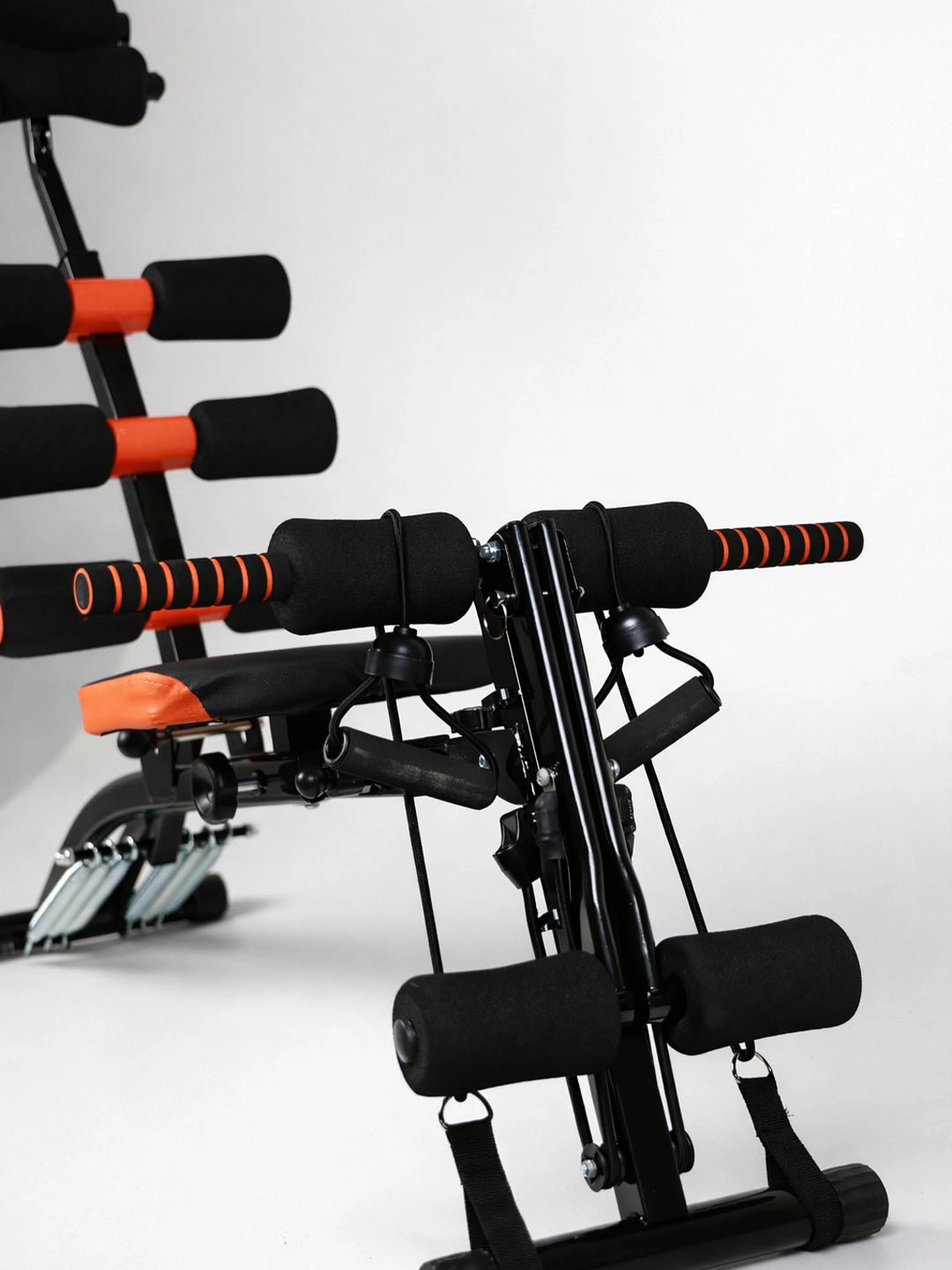 Bu 6-da 1 ko‘p funksiyali trenajyor — uy sharoitida foydalanish uchun mo‘ljallangan, ixcham va universal fitness uskunasidir. Trenajyor turli xil kuch va funksional mashqlarni bajarishga imkon beradi, shu jumladan yuqori va pastki tana mushaklari uchun. Orqasi burchagi o‘zgartiriladigan skam’ya va qarshilik beruvchi elastik lentalar bilan jihozlangan, bu esa mashqlarning turini va qiyinligini oshiradi. Metall karkas mustahkam bo‘lib, mashqlar paytida barqarorlikni ta’minlaydi. U o‘lchami jihatidan ixcham bo‘lgani uchun uyni cheklangan joyida ham ishlatish mumkin.