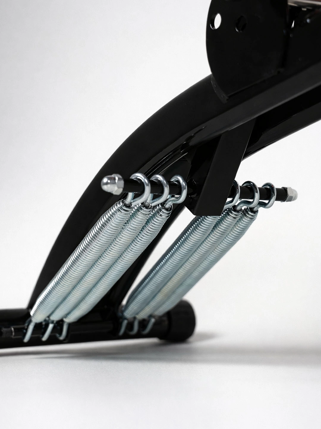 Trenajyor orqa burchagi sozlanadigan skam’yaga ega bo‘lib, turli mashqlarni bajarish imkonini beradi: masalan, qiyalikda press, dumbbell bilan mashqlar yoki qorin mashqlari. Elastik lentalar esa qo‘l va yelka mushaklarini kuchaytiruvchi qarshilik beradi. Metall ramka mashqlar paytida barqarorlikni ta’minlaydi.