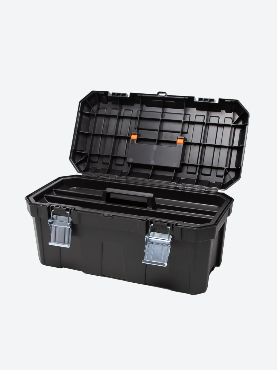 🛠️ Два отделения — верхний компактный ящик и нижний большой контейнер.