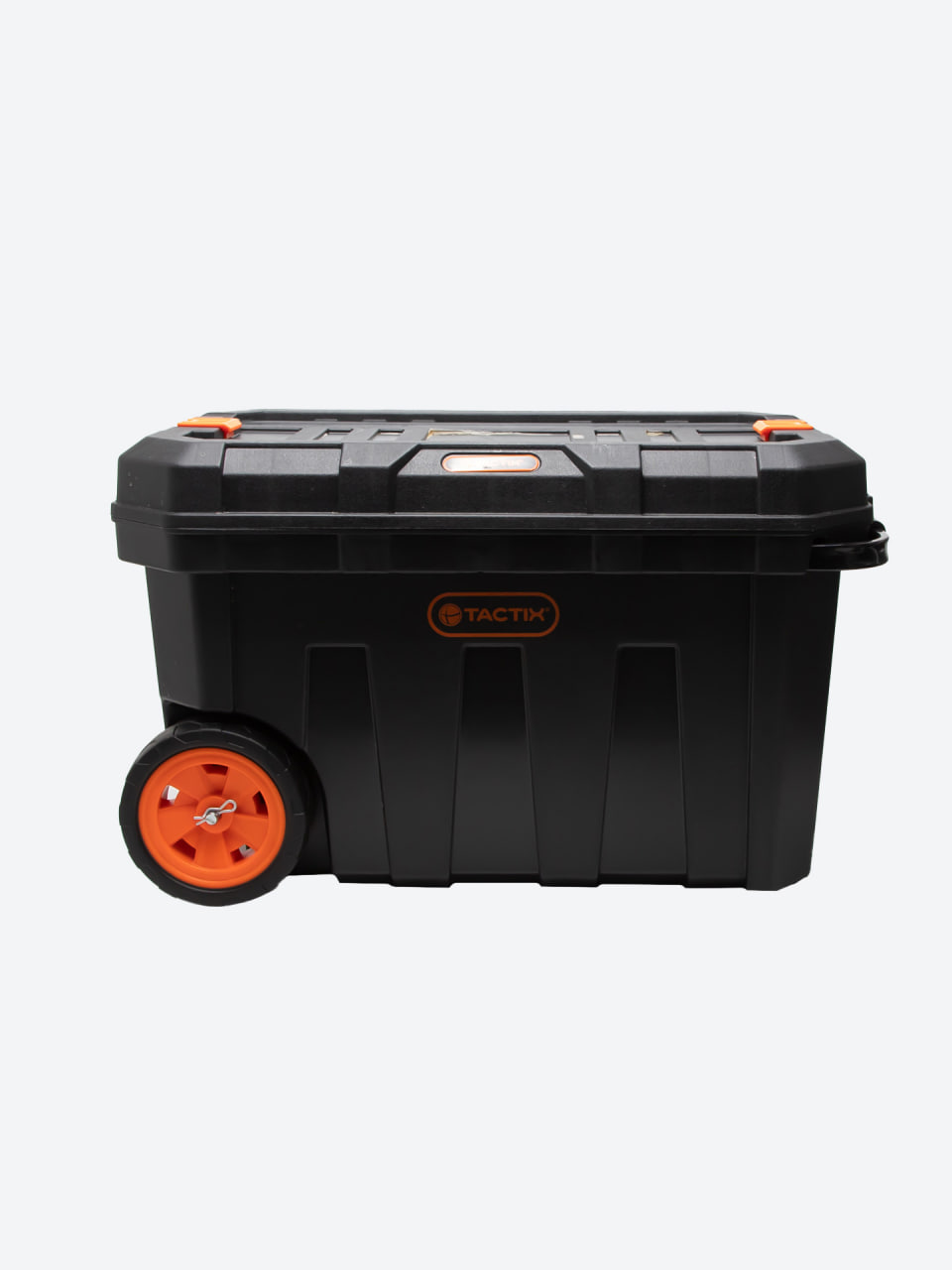 TACTIX 320310 — это прочный модульный ящик на колёсах, созданный для удобного хранения и транспортировки инструментов. Он сочетает в себе вместительность, мобильность и продуманную организацию.