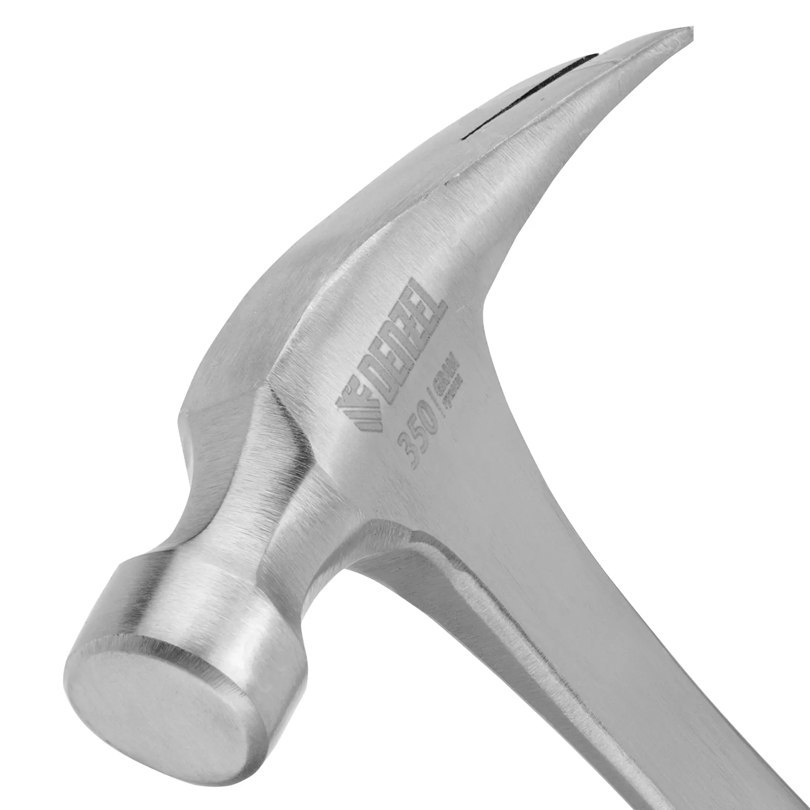 С одной стороны расположен круглый боек для нанесения чётких ударов, а с другой — изогнутый клиновидный захват, позволяющий легко поддеть и вынуть гвоздь. Такая конструкция делает молоток универсальным и востребованным в строительстве, ремонте, монтажных и плотницких работах.