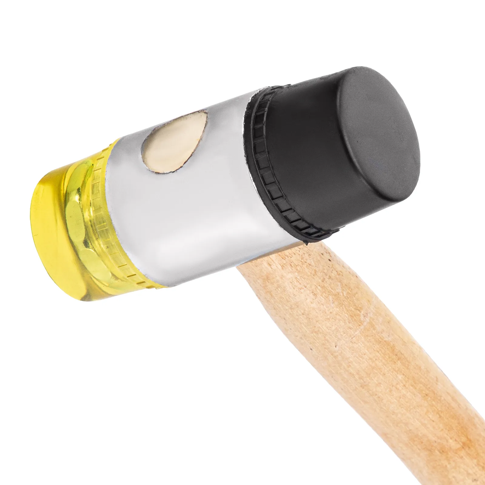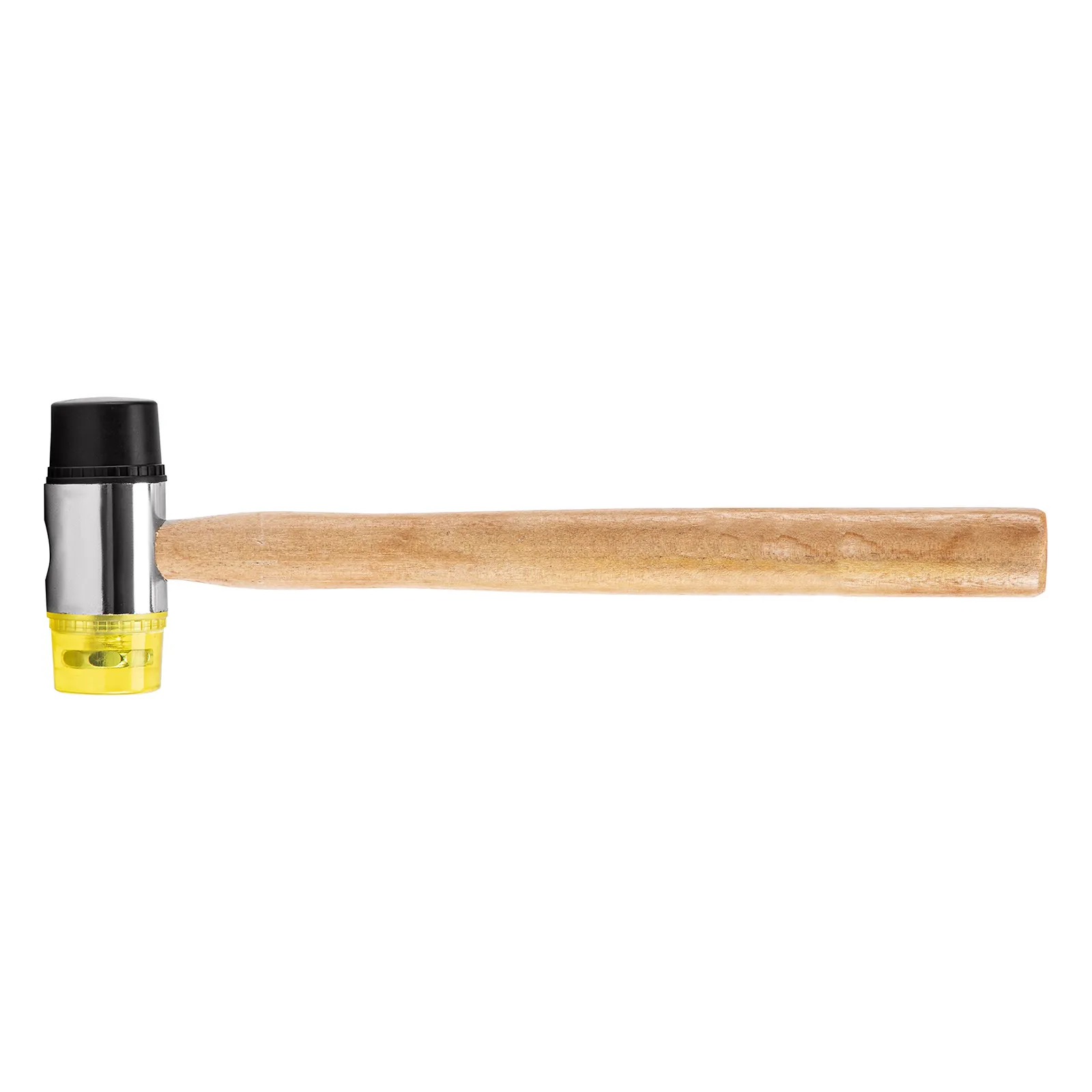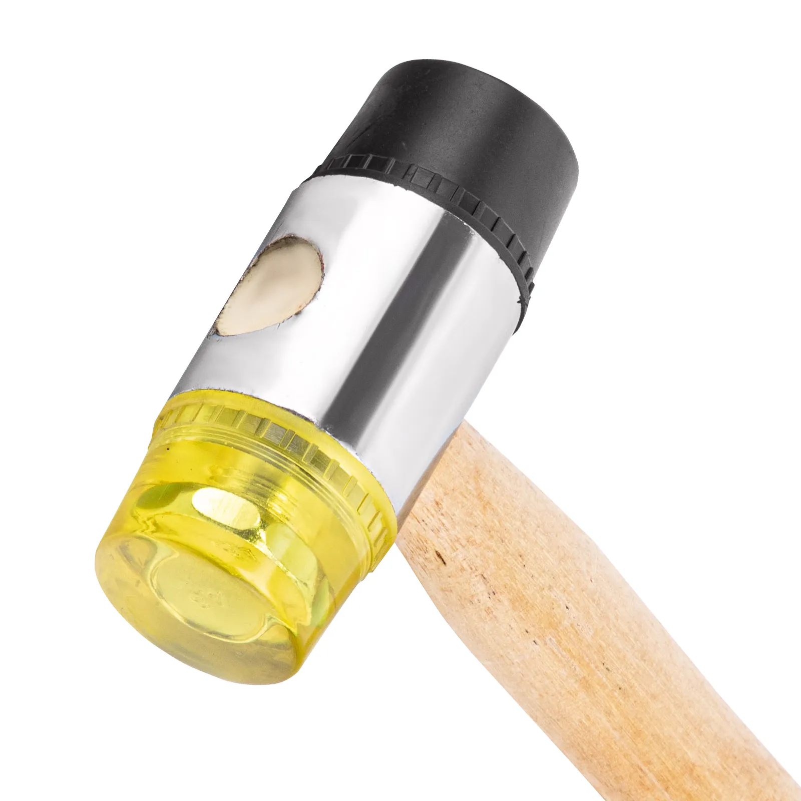 Молоток рихтовочный Sparta 108305 — это инструмент с бойками диаметром 35 мм, комбинированной головкой и деревянной рукояткой, относящийся к бытовому классу. Он предназначен для выправления деформированных металлических листов и обработки мягких материалов. Благодаря особенностям конструкции молоток не повреждает поверхность при ударах, что делает его полезным в мастерской, гараже или домашних условиях.