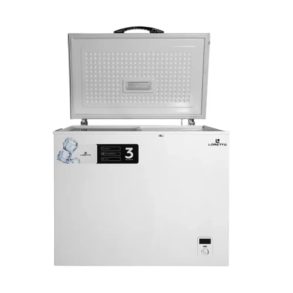Морозильная камера Loretto LF-291CH — это стильное и вместительное решение для тех, кто ценит удобство и надёжность хранения продуктов. При объёме 271 литр и производительности замораживания до 12 кг в сутки, она идеально подойдёт для дома, дачи или небольшого бизнеса. Благодаря температурному режиму до −24°C, морозильник обеспечивает глубокую и равномерную заморозку, сохраняя свежесть и вкус продуктов надолго. Устройство выполнено в эстетичном белом корпусе и оснащено трёмя вместительными корзинами, позволяющими удобно распределять мясо, рыбу, овощи или ягоды. Для максимального комфорта предусмотрена яркая LED-подсветка, обеспечивающая отличную видимость даже в тёмное время суток. Дополнительные элементы — встроенный замок и колёсики — делают использование безопасным и лёгким в перемещении. Дисплей для управления температурой позволяет точно настраивать нужный режим хранения. Модель работает тихо — всего 42 дБ, а использование экологичного хладагента R600a делает её безопасной для окружающей среды. В комплект входят скребок, инструкция, гарантия и фирменный блокнот. Морозильная камера Loretto LF-291CH — это сочетание современного дизайна, функциональности и высокой производительности, созданное для тех, кто хочет хранить продукты с комфортом и уверенностью в качестве.