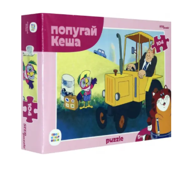 1 год гарантии от производителя Примем товары в течении 10 дней и сразу вернём деньгиПазл «Попугай Кеша» — это увлекательная настольная игра из 104 деталей, созданная по мотивам любимого советского мультфильма. На красочной иллюстрации изображён момент, когда Кеша собирается в гости к трактористу Василию. Весёлый сюжет и яркие краски делают процесс сборки интересным и познавательным для детей.