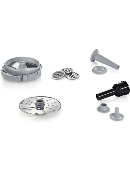 Устройство Bosch MFW68680 поставляется с набором полезных насадок: терка, кеббе, колбасы, шинковка, нарезание кубиков и 3 диска для фарша. Комфортной эксплуатации способствует наличие эффективной защиты двигателя от перегрузок и системы обратного хода. Конструкция не скользит по кухонному столу во время работы благодаря резиновым накладкам на ножках.