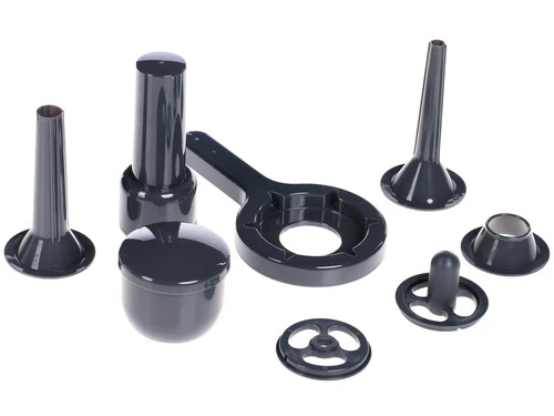Комплектация включает три перфорированных диска для фарша разного помола, насадки для кеббе и колбас, что позволяет разнообразить меню и готовить любимые блюда для всей семьи.