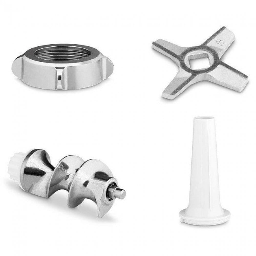 Материалы ножа и шнека из высококачественного металла гарантируют долговечность и эффективную работу на протяжении долгого времени. Благодаря трём насадкам с отверстиями размером 2.7 мм, 4 мм и 8 мм, вы можете выбирать нужную консистенцию мясного фарша в зависимости от ваших предпочтений.