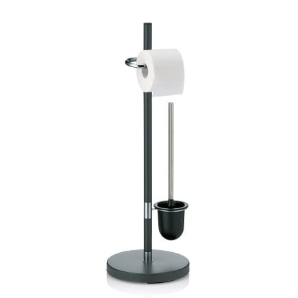 Элегантный туалетный гарнитур KELA Sinerio станет неотъемлемым элементом современного интерьера ванной комнаты. Изготовленный из хромированной стали с матовым антрацитовым покрытием, он сочетает в себе долговечность, устойчивость к влаге и утончённый дизайн.