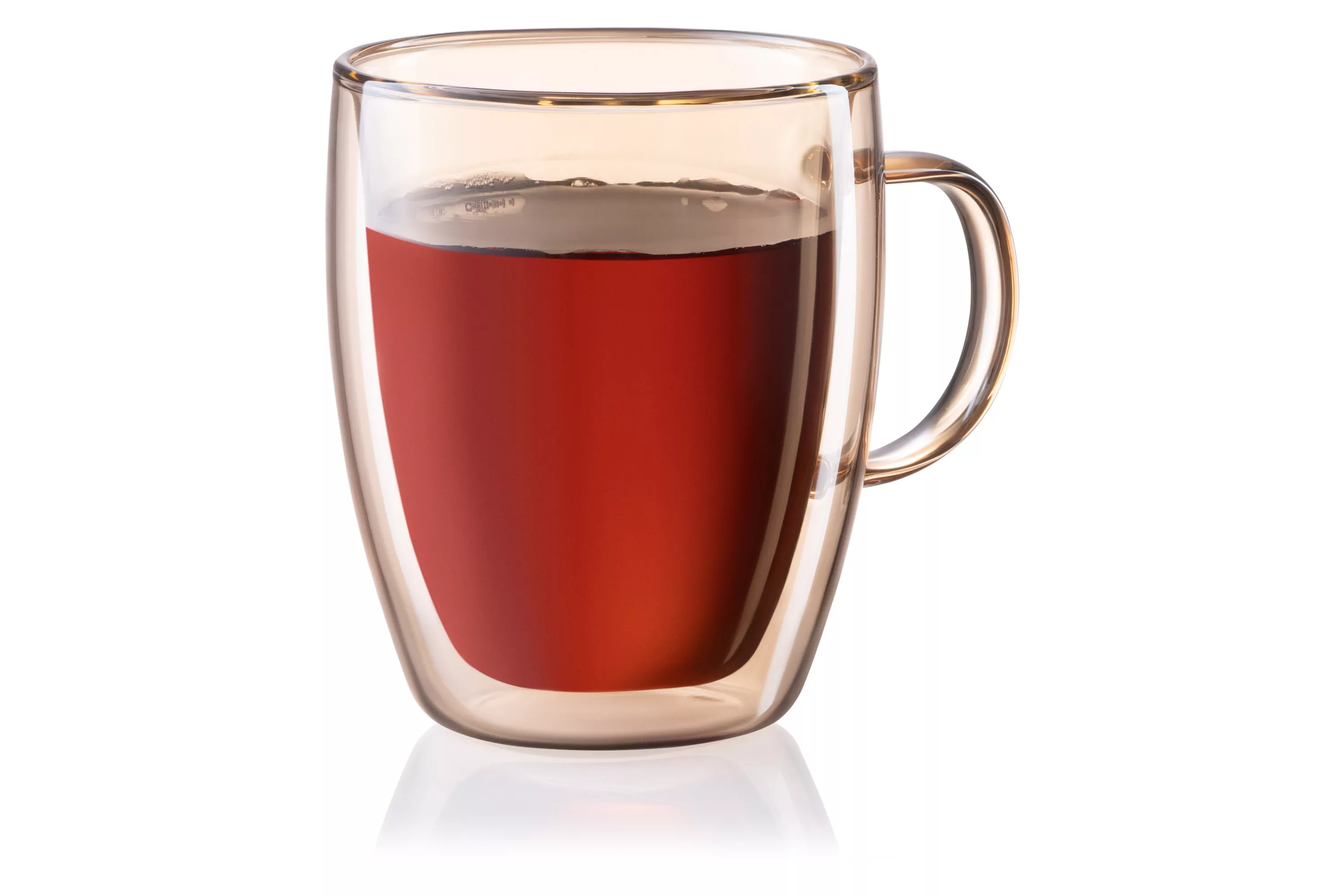 Изысканный дизайн и прозрачно-золотистый цвет добавляют столу особый шарм. Высота чашки – 10 см, диаметр – 8 см, что обеспечивает удобство в использовании и наслаждение напитком с комфортом.