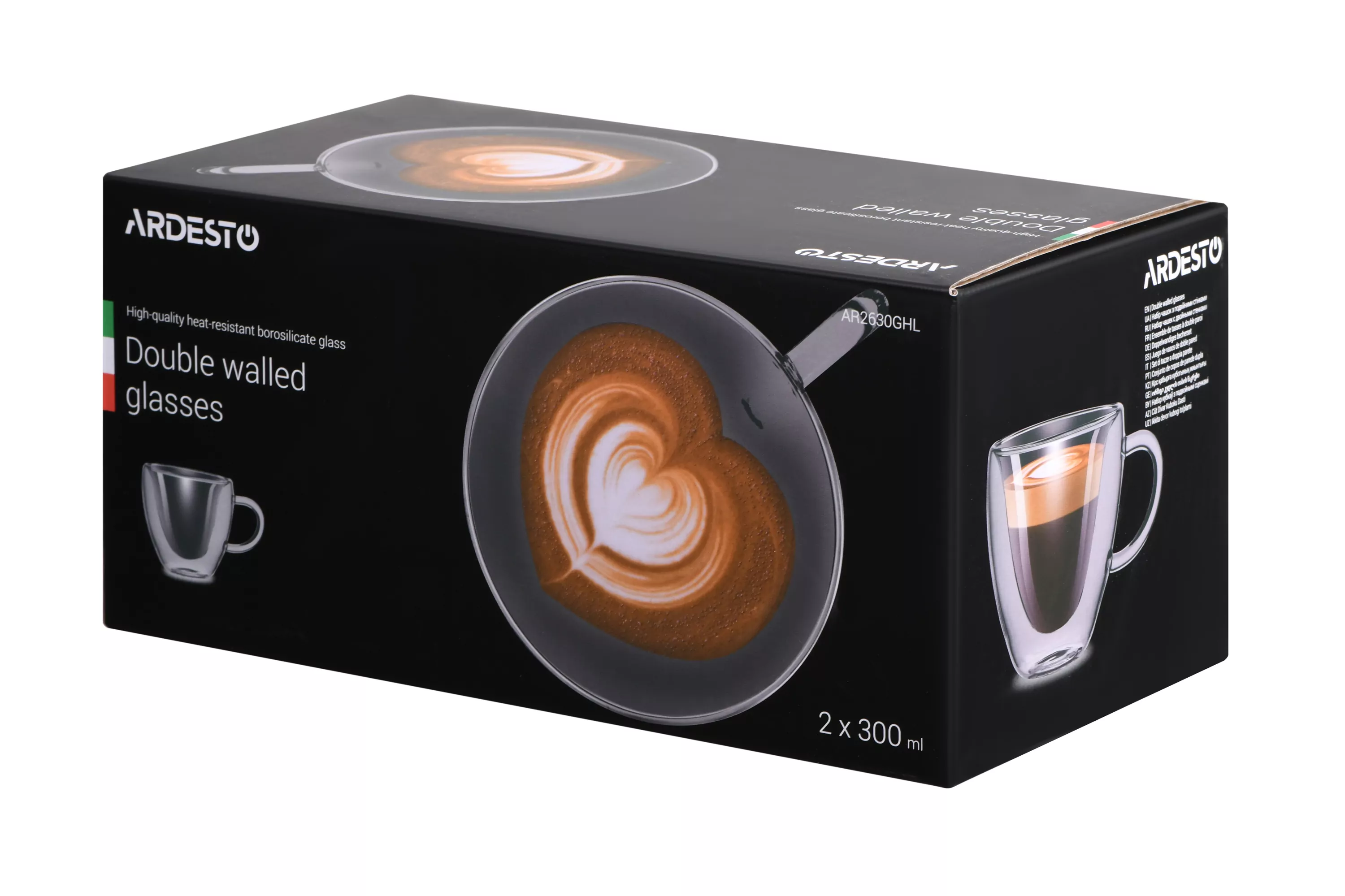 Стильные и практичные чашки ARDESTO с двойными стенками делают каждую паузу за кофе или чаем особенно приятной. В набор входят 2 чашки объёмом 300 мл каждая — идеальный размер для латте, капучино или любого горячего напитка.