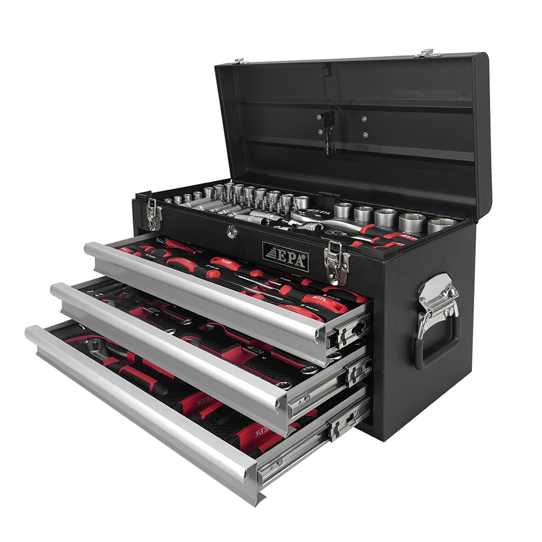 EPA ENCH-108 — bu mutaxassislar uchun qulay, ishonchli va universal mexanik asboblar stansiyasi bo‘lib, barchasi bitta metall keysta jamlangan. Asboblar uchta chiqadigan bo‘lim va yuqori qismga ega mustahkam po‘latdan yasalgan yashikda tartibli joylashtirilgan.