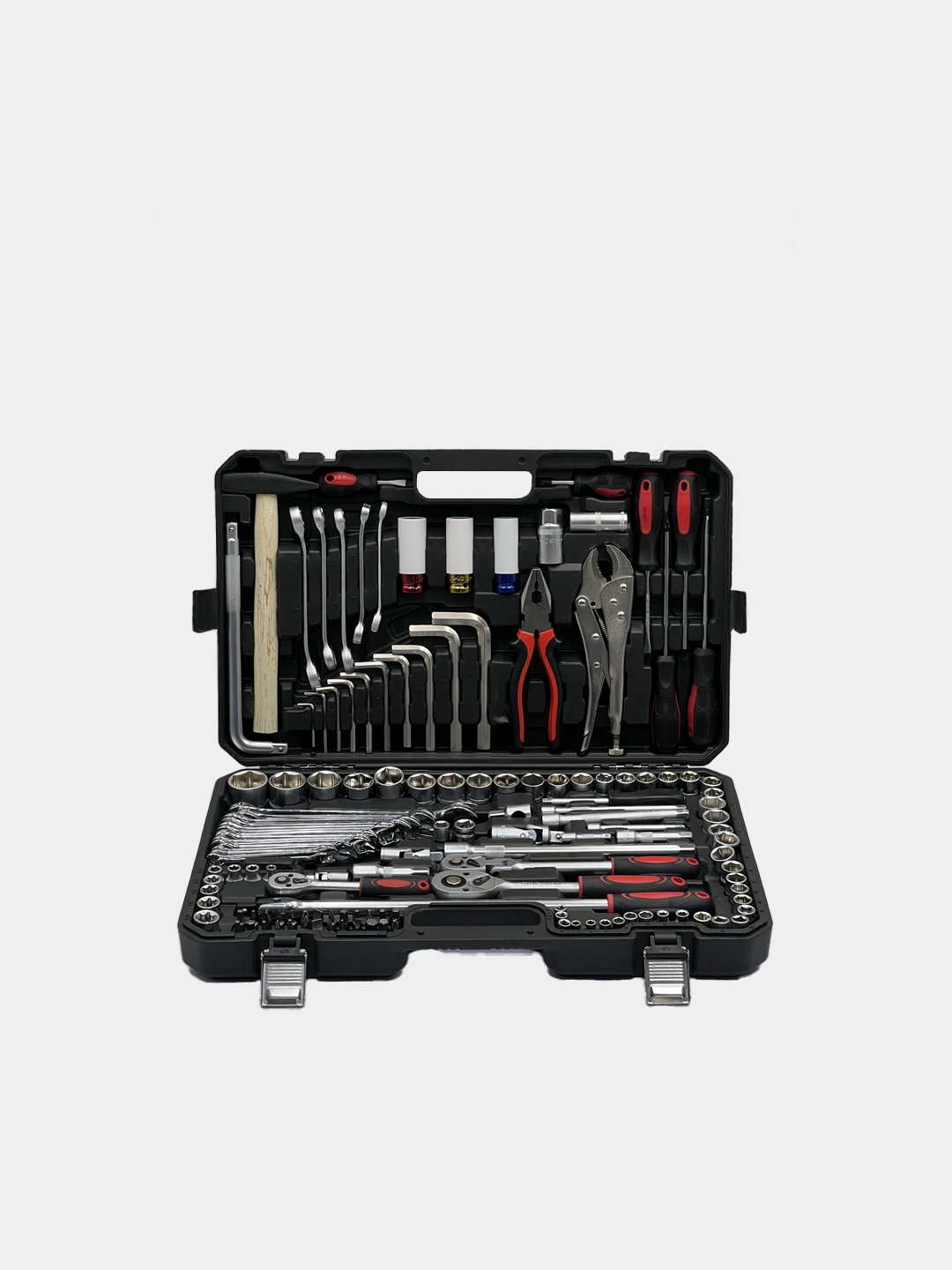 To'plamda o'zboshimchaliklar, ploskogubkalar, kalitlar, bolg'a, bitlar va burg'ulash to'plamlari, shuningdek, metall, yog'och va plastik bilan ishlash uchun boshqa asboblar mavjud. Bu sizga har qanday vazifani bajarishga tayyor bo'lishni kafolatlaydi.