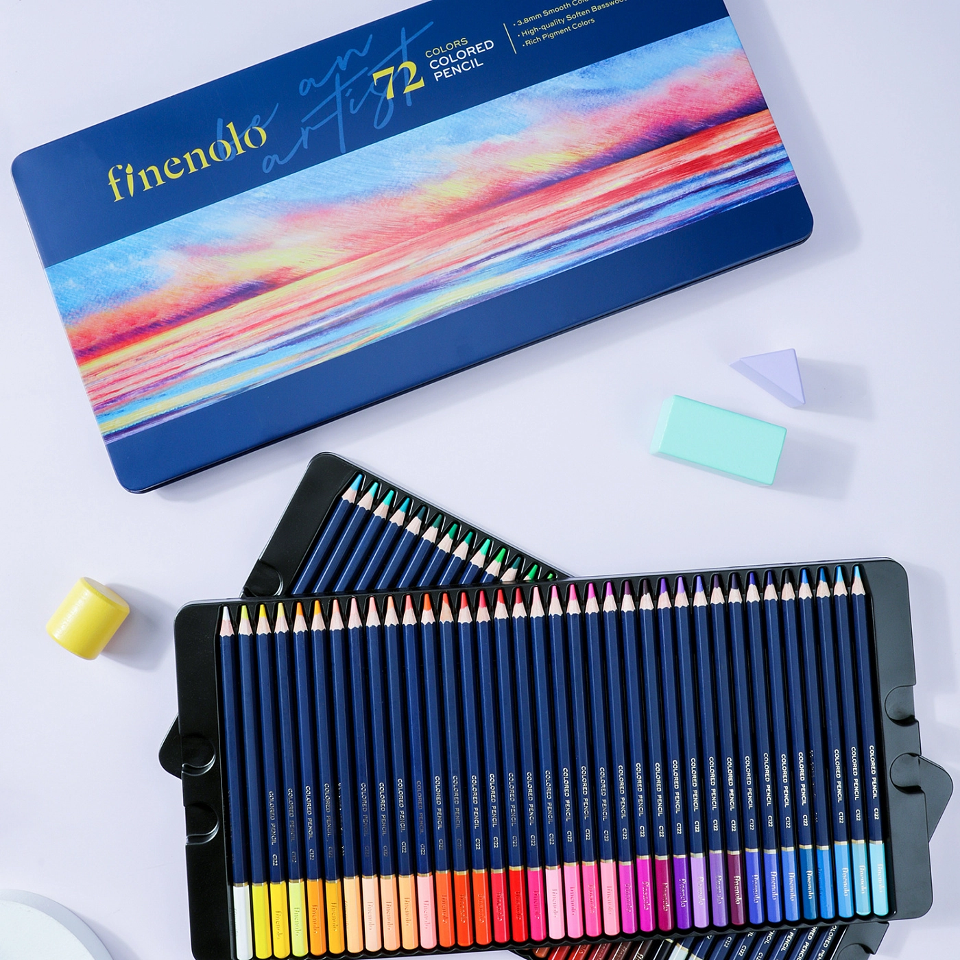 Rangli qalamlar to‘plami Finenolo 72 rang, metall penalda C122-72 — bu san’at ixlosmandlari, talabalar va professional rassomlar uchun mo‘ljallangan yuqori sifatli va qulay ijodiy vositalar to‘plami. U rasm chizish, bo‘yash va turli ijodiy loyihalarni amalga oshirishda keng imkoniyatlar yaratadi.