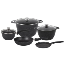 Idishlar korpusi quyma alyuminiydan tayyorlangan bo‘lib, u mustahkamlik va bardoshlilikni ta’minlaydi. 6 mm lik qalin taglik va 4,5 mm lik devorlar issiqlikni teng taqsimlaydi, bu esa taomning kuyishini yoki idishning deformatsiyalanishini oldini oladi. Yangi avlod marmar qoplamasi mineral zarrachalar bilan mustahkamlangan bo‘lib, tirnalishga chidamli va sog‘lik uchun xavfsiz (PFOA moddasiz). Kundalik foydalanish uchun mo‘ljallangan.