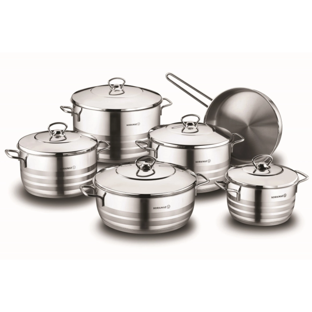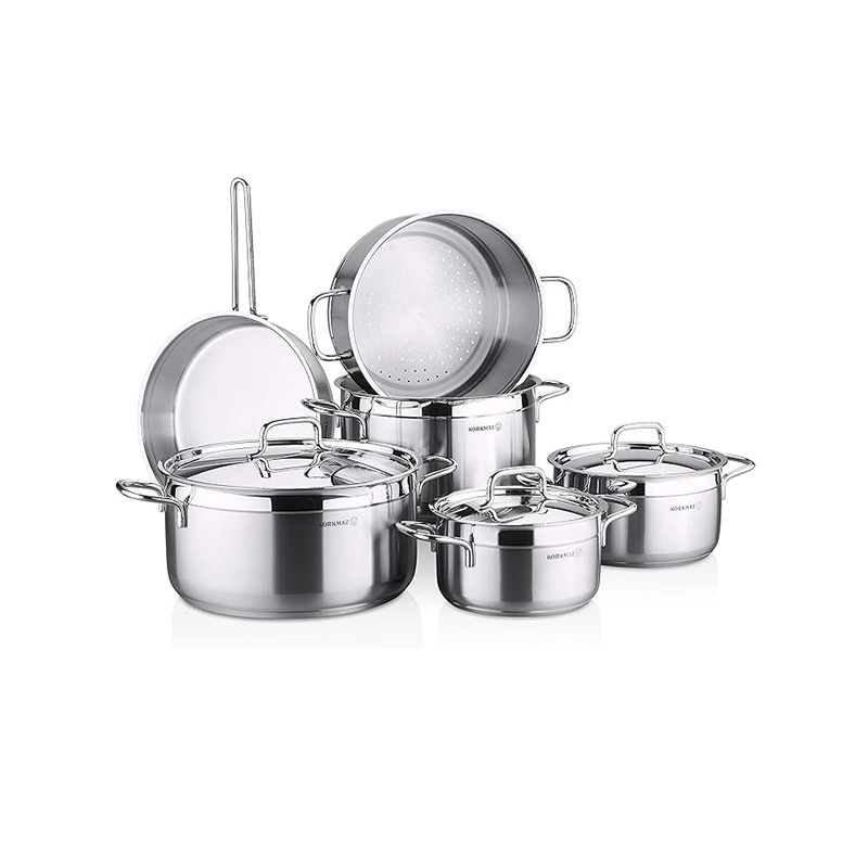 Korkmaz Alfa Plus Couscous 10 pcs Cookware Set A1998 — zamonaviy oshxona uchun universal zanglamaydigan po‘latdan tayyorlangan idishlar to‘plami